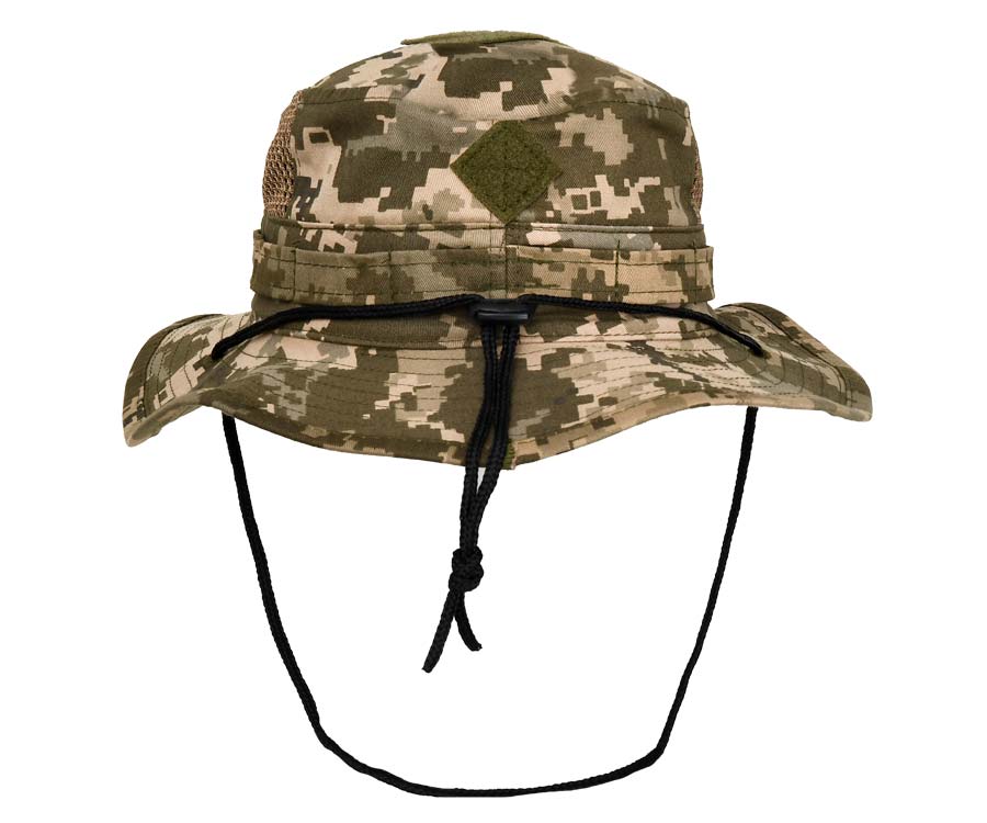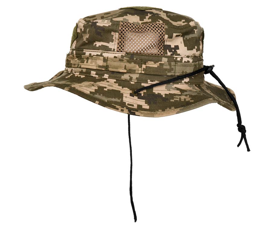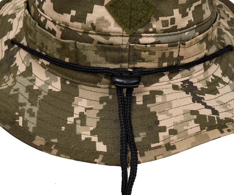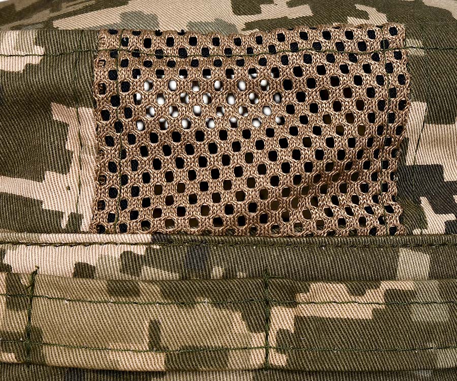 Панаму тактичну призначено для захисту голови від палючих сонячних променів та негоди в польових умовах. Широкі криси відмінно прикривають обличчя та шию від палючих сонячних променів у спеку або від дощу та мряки в негоду. Панаму виготовлено з високоякісного матеріалу Ripstop, для якого характерні легкість, висока стійкість до стирання та розривів, легке прання та швидке висихання. Щоби панама надійно трималася на голові й не злітала від вітру або під час бігу, передбачено спеціальну тасьму на підборіддя з фіксатором. У верхній частині панами є вентиляційна вставка із сітчастого матеріалу, що забезпечує відмінну циркуляцію повітря. Тактична панама-капелюх із широкими полями також ідеально підходять для використання за активного способу життя – для риболовлі, полювання, туризму, відпочинку на природі. Колір: камуфляж піксель хакі. Розмір: 56-58.