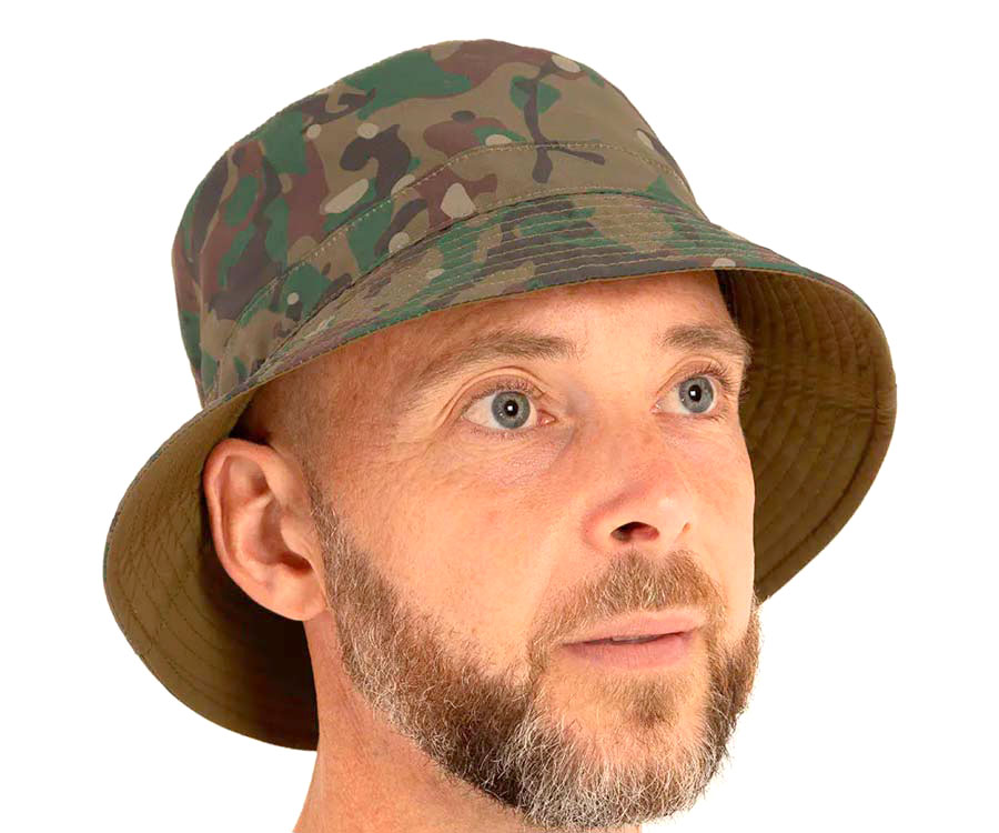 Двостороння водонепроникна панама Trakker Reversible Bucket Hat стане чудовим доповненням до вашого риболовного одягу. Її виготовлено з надм'якого й легкого водостійкого матеріалу для максимального комфорту та захисту від дощу. Один бік панами Reversible Bucket Hat покрито унікальним камуфляжним принтом, а інший бік виконано в популярному зеленому кольорі Trakker, що застосовується в рибальському одязі компанії.