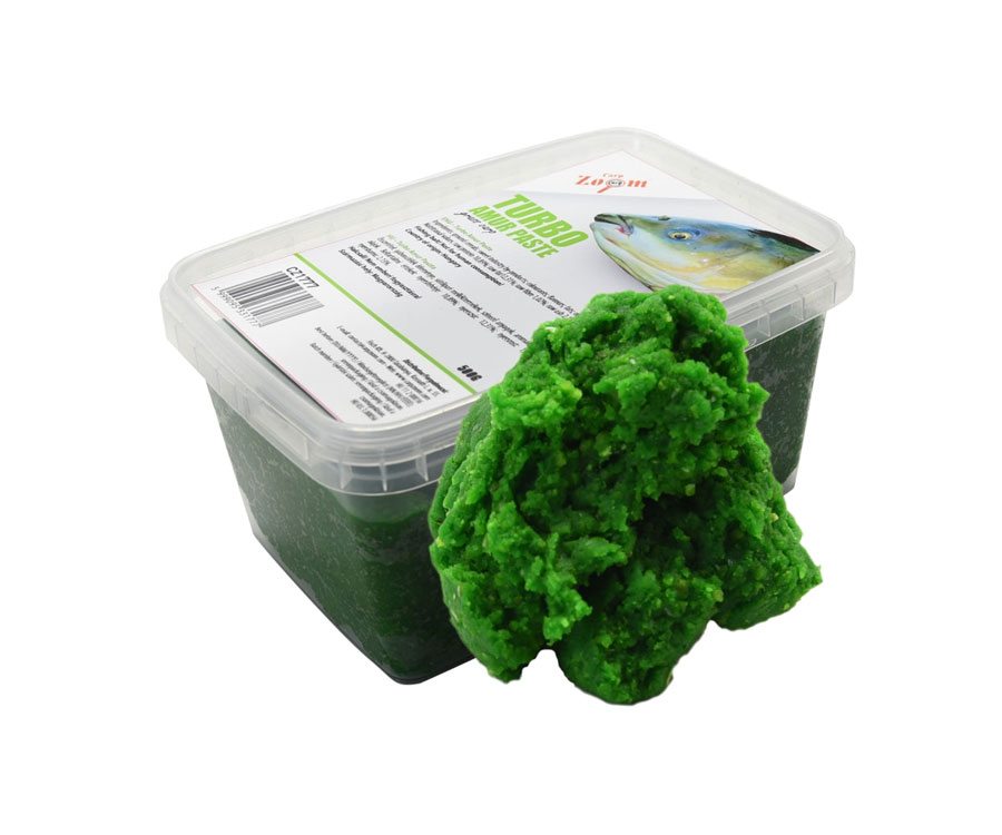 Паста на амура Carp Zoom Amur Grass Carp Turbo Paste – новинка від компанії Carp Zoom для цілеспрямованої ловлі амура. Паста Carp Zoom Amur Grass Carp Turbo Paste дає змогу самостійно виготовити насадку будь-якої форми або обліпити нею вашу приманку, урізноманітнюючи її смакові й ароматичні властивості. Паста тонуча, має зелений колір, у воді створює інтенсивний аромат, збагачений високим вмістом водоростей (спіруліни), що безвідмовно діє на білого амура.