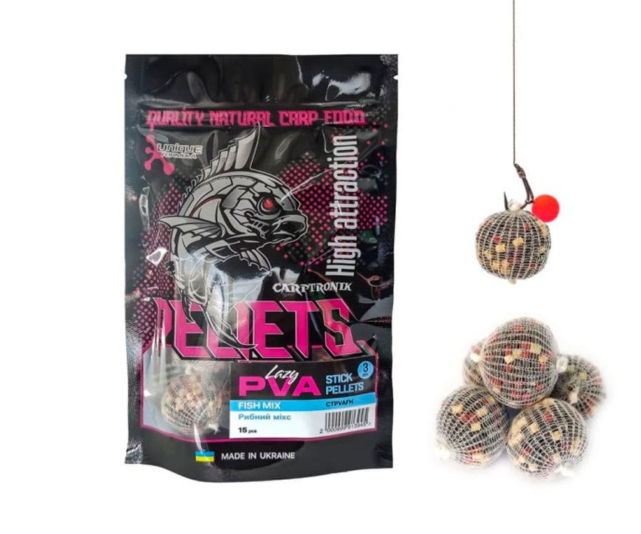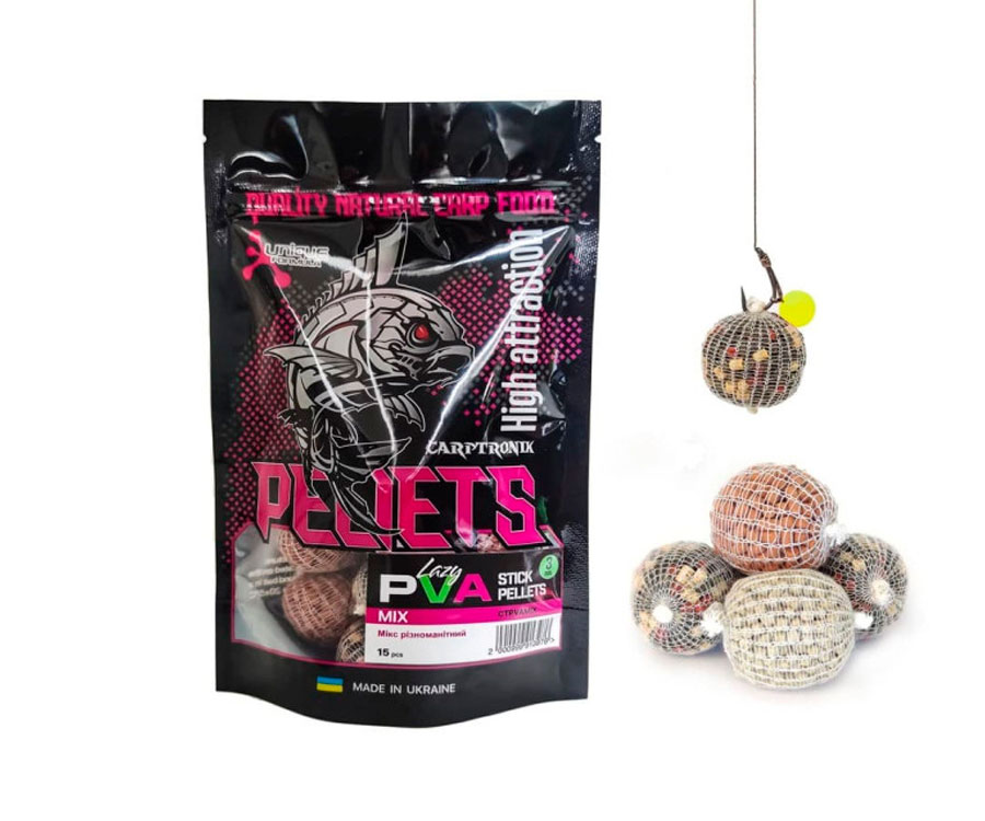 Цей мікс виготовлений з пелету 3мм власного виробництва. До складу пелету входять: борошно (рисове, пшеничне, соєве, кукурудзяне, рибне, криля, кальмара, креветки), ізоляти сої та молочної сироватки, молочні протеїни, вітаміни, амінокосплекс, підсолоджувачі, підсилювачі смаку, харчові добавки, екстракти риб . Добре підійдуть для лову при коротких сесіях, коли риба неактивно харчується або при пошуку нових точок лову.