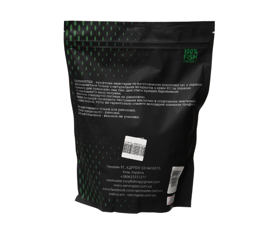 Rainmaster Pellets Atlantic створено за унікальною рецептурою, здобутою впродовж багатьох років на великій кількості змагань із коропової ловлі під час максимального пресингу на рибу. Пелетс Rainmaster Pellets Atlantic виготовлено виключно з натуральних якісних інгредієнтів, які не шкодять навколишньому середовищу та смакують рибі. Застосування: можна додавати до стік-міксу, ПВА-пакетів, як доповнення в невеликій кількісті до спод-міксу. Склад: крильовий пелетс 2 мм, рибні екстракти, екстракти морських гадів, вітаміни та амінокислоти. Задіповано за власною технологію Rainmaster. Ароматика: має унікальний власний запах так званого криля. Містить: білки – 54%, жири – 12%. Вага: 1 кг.