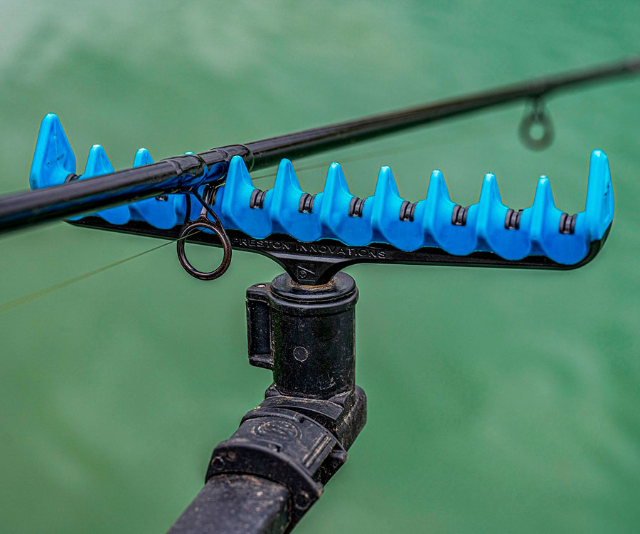 Preston Rod Safe Multi – це інноваційна підставка, яка дозволяє встановити фідерне вудлище в декількох положеннях, при необхідності регулюючи натяг вершинки. У кожній із секцій підставки-гребінки є спеціальна канавка для проходження жилки, яка дозволяє вносити невеликі зміни в натяг квівертипу. Також кожна секція має досить високі стінки, щоб не допустити стягування й падіння вудлища під час потужних клювань. Довжина підставки Preston Rod Safe Multi: 20 см.