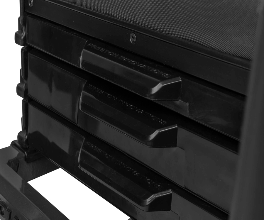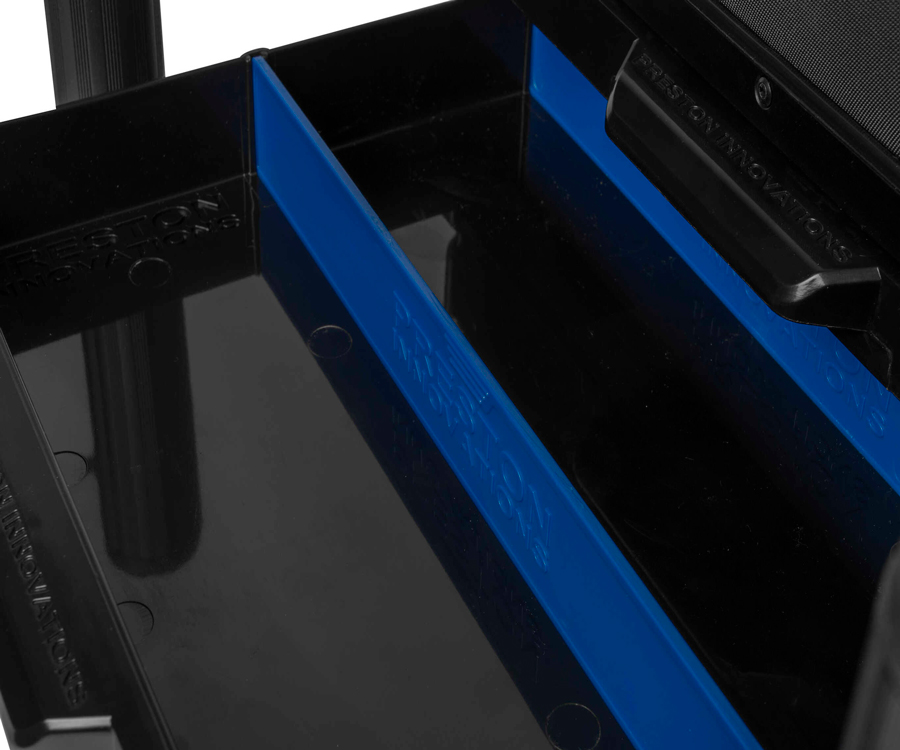 Для зручності експлуатації платформа комплектується різноманітними модулями, що суттєво розширюють її функціональність, а також передбачає можливість монтажу різного обважування – як фірмового від Preston, так і від сторонніх виробників. До комплекту постачання входять два глибокі бічні ящики, один неглибокий бічний ящик і 26-міліметровий неглибокий лоток із кришкою.