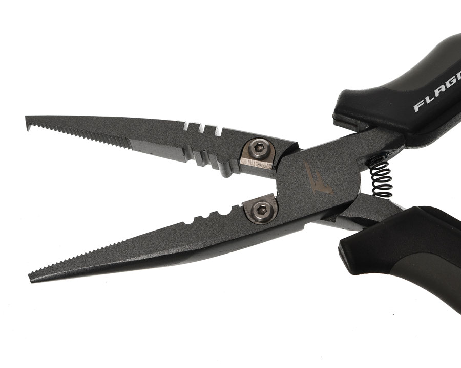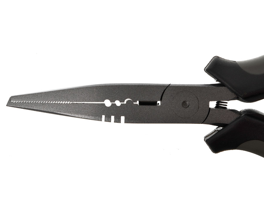 Flagman Multifunctional Fishing Pliers – багатофункціональні риболовні плоскогубці, які виготовлено з якісної нержавіючої сталі. Вони дають змогу значно спростити задачі, що виникають у процесі ловлі, а також під час виготовлення монтажів та оснасток. Обценьки Flagman мають спеціальний «зуб» для розтискання завідних кілець, пристосування для затискання обтискних трубочок різних діаметрів і прорізи різної ширини, що допоможуть підігнути петельку воблера, гачок або елемент оснастки. Також плоскогубці Flagman Multifunctional Fishing Pliers обладнано різцями з карбіду вольфраму, які з легкістю перекушують шнури та жилки. Різці знімні, їх можна замінити в разі потреби (запасні купують окремо). Ергономічні пластикові накладки дають змогу комфортно утримувати інструмент у руці та працювати з ним. Риболовні плоскогубці Multifunctional Fishing Pliers поставляються в блістері. Довжина: 175 мм.