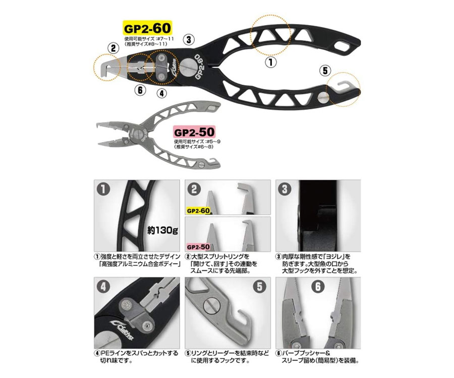 Owner Game Plier GP2-60 9728 - багатофункціональний рибальський інструмент, за допомогою якого під час монтажу приманок або оснасток можна з легкістю розтискати заводні кільця розміром #7-11 і потужністю від 50 до 250 lb. Рибальські плоскогубці Owner GP2-60 оснащені не тільки різаками, які слугують ножицями для перерізання РЕ шнурів і шок лідерів, а й спеціальним пристосуванням, захованим в одному з руків'їв, яке можна використовувати під час в'язання складних трудомістких вузлів. Мультиінструмент Owner GP2-60 виконаний з корозійностійкого алюмінієвого сплаву підвищеної жорсткості. Оригінальні ергономічні рукояті зручні для захоплення і плідної роботи.