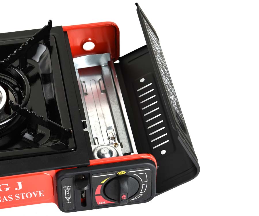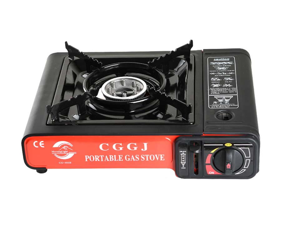 Плита газова туристична CGGJ KC-CGGJ – компактна і практична плитка, яка працює від газових балонів. Це відмінний варіант для активного заміського відпочинку на природі, риболовлі, полювання або кемпінгу. Плита виручить на дачі або на домашній кухні. Вона дасть змогу швидко й комфортно приготувати або розігріти їжу в домашніх і польових умовах. Ця модель сумісна з газовими балонами 220 г, які оснащено цанговим з'єднанням. За використання таких балонів споживання газу становить 170 г на годину, а номінальна потужність біля 2300 Вт. Також плиту можна під'єднати за допомогою перехідника (йде в комплекті) до газових балонів зі скрапленим газом об'ємом 5, 12, 27, 50 л (витрати газу 150 г/год). Максимальна потужність у таких випадках становить біля 2000 Вт.