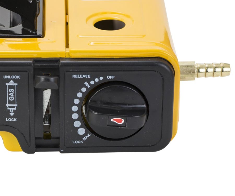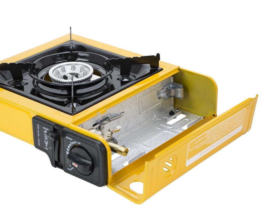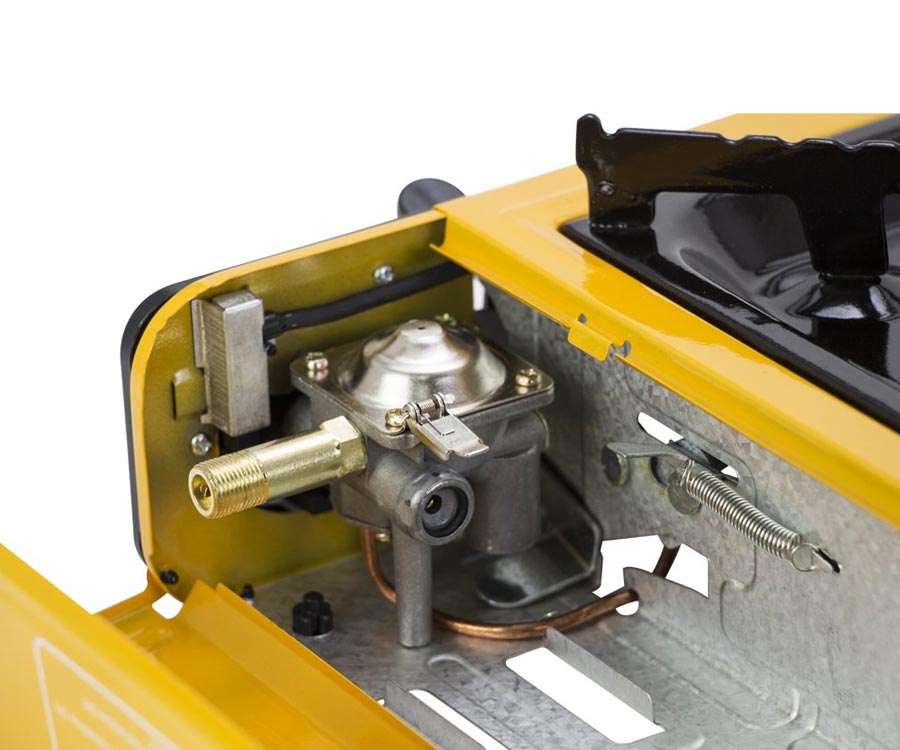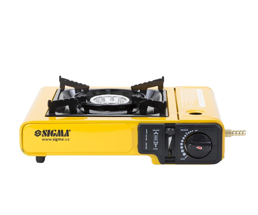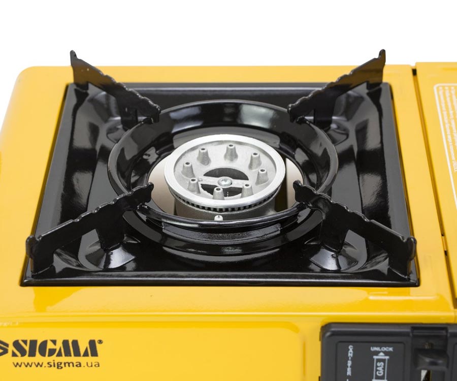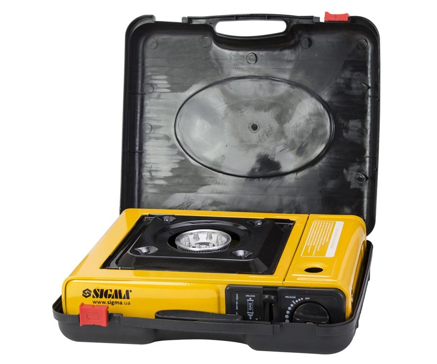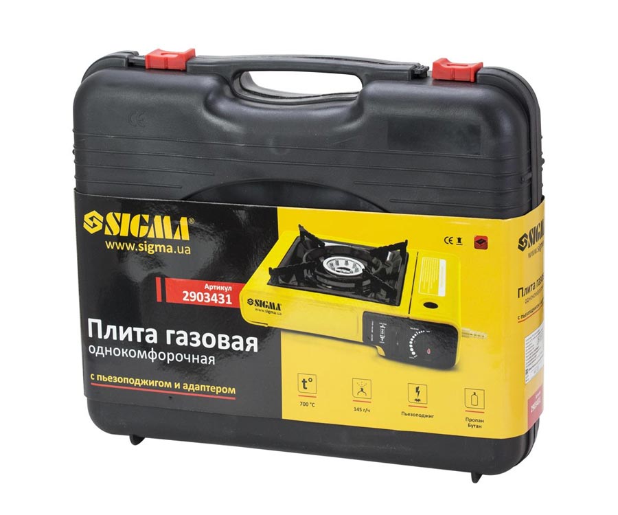 Плита газова одноконфорочна з п'єзопідпалом та адаптером Sigma (2903431) – сучасна газова плита, яку призначено для використання на дачі, в походах і під час тривалих подорожей. Модель має одну конфорку потужністю 2,8 кВт. Ця плитка гарантує комфортне приготування їжі в будь-якому місці. Її конструкція надійна і продумана, газовий балон встановлюється всередині плити. Модель економічна у використанні, має п'єзопідпал і вбудований регулятор потужності. Паливо для роботи плити: цанговий газовий балон 220 г (пропан, бутан) або балони ємністю 5, 8, 10, 27 чи 50 л через адаптер.