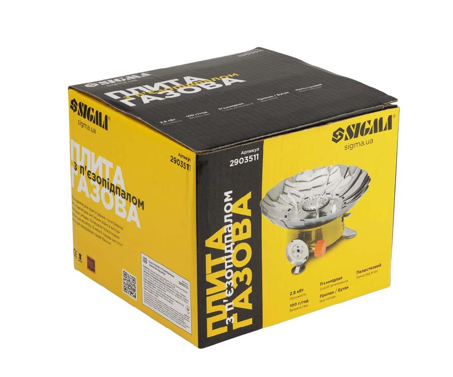 Плиту газову з п'єзопідпалом і захистом від вітру Sigma (2903511) призначено для приготування та розігрівання їжі, а також для кип'ятіння рідини в екстремальних умовах. Комплектується пелюстковим захистом від вітру. Як паливо застосовують цангові одноразові газові балони.