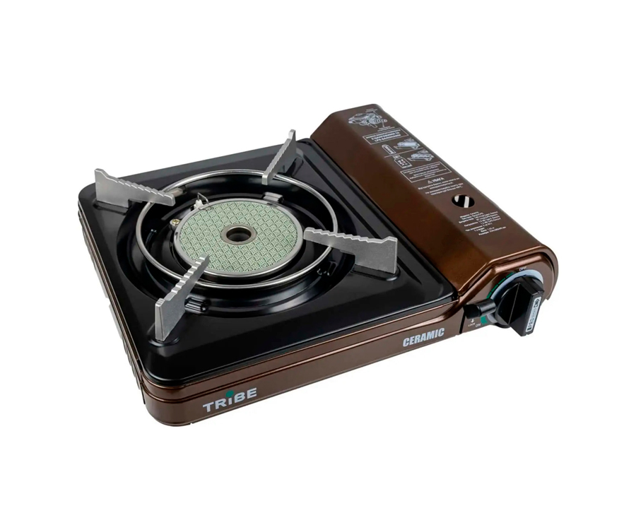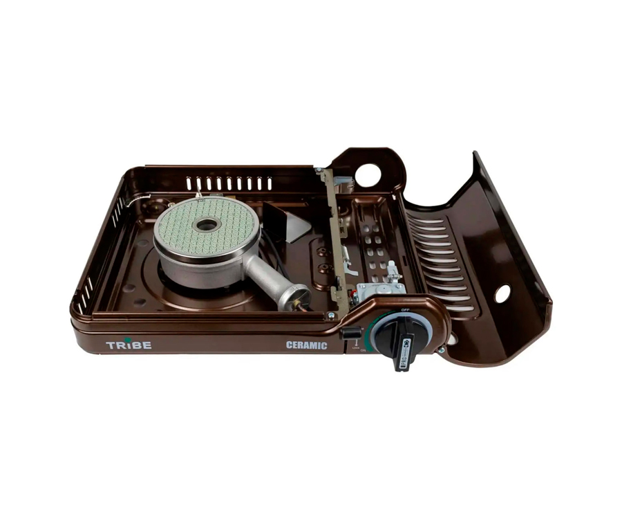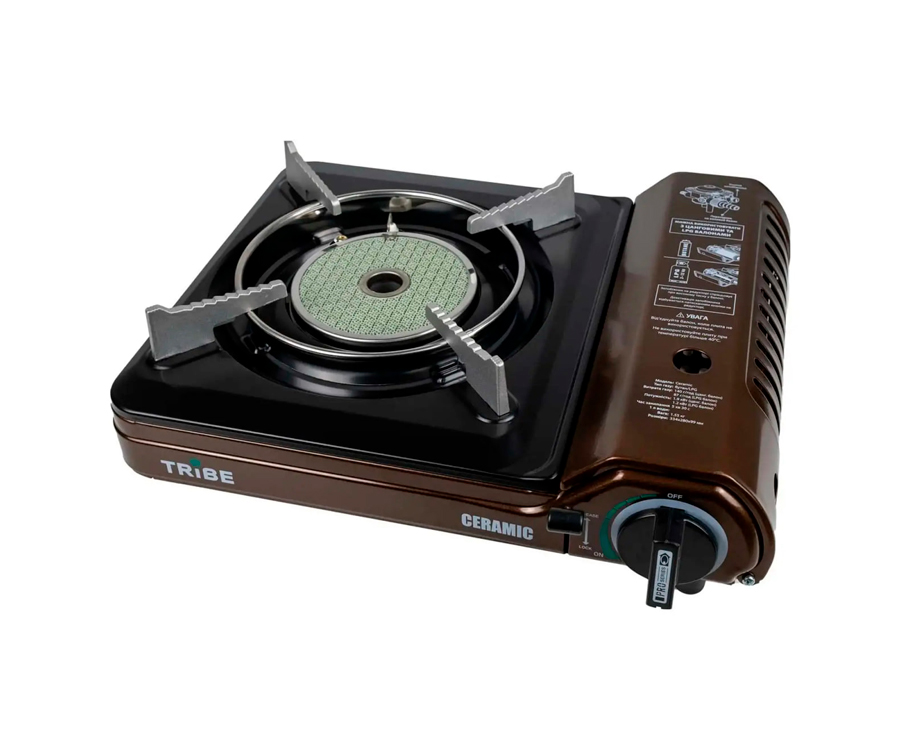 Компактна туристична одноконфорочна газова плита, оснащена інфрачервоною керамічною конфоркою, що забезпечує ефективне та економне приготування їжі з мінімальним використанням палива і майже без відкритого полум'я.