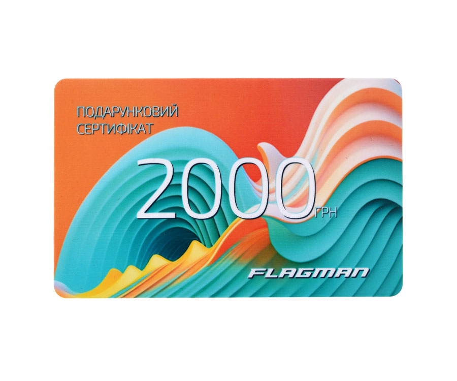 Подарунковий сертифікат номіналом 2000 грн. дає можливість здійснити одноразову покупку в будь-якому магазині мережі Flagman на суму 2000 грн. Подарунковий сертифікат – найкращий подарунок для будь-якого риболова!