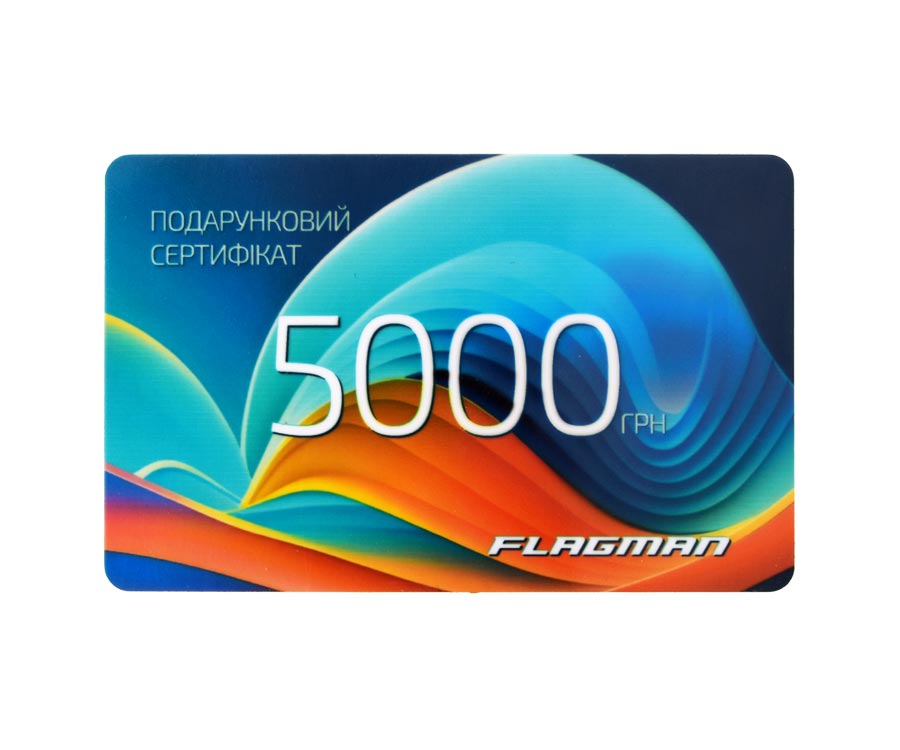 Подарунковий сертифікат номіналом 5000 грн. дає можливість здійснити одноразову покупку в будь-якому магазині мережі Flagman на суму 5000 грн. Подарунковий сертифікат – найкращий подарунок для будь-якого риболова!