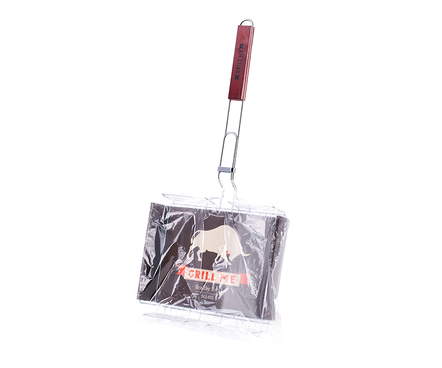 Grill Me BQ-032 - універсальна подвійна решітка-гриль, призначена для смаження м'яса, птиці, риби та овочів на вугіллі. Виготовлена з високоякісної сталі з харчовим нікельованим антипригарним покриттям. Завдяки своїм розмірам ця решітка для гриля дає змогу розташувати на ній продукт як цілком, так і приготувати його шматочками. Решітка гриль неймовірно зручна під час транспортування, ідеально підходить для готування як на мангалі, так і на відкритому вогні або в каміні. Решітки для гриля Grill Me BQ мають незаперечну перевагу над шампурами, оскільки готувати на них можна порційно, подаючи до столу приготований продукт із запалу з жару!