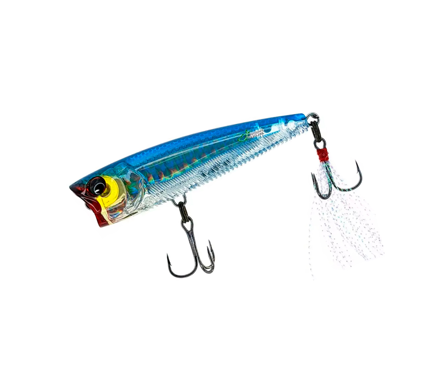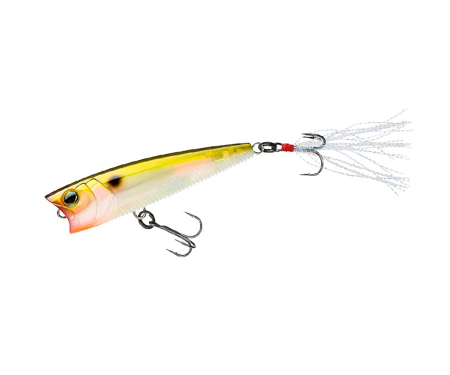 Дуже цікава уловиста японська приманка для спінінга. Одна з найкращих літніх приманок на окуня, щуку. Завдяки особливостям конструкції при ривковій проводці видає специфічне булькання, а на рівномірній протяжці запускає на поверхні води красиві "вуси" та бризки. Усе це чарівно впливає на рибу, спонукаючи її активно харчуватися. Чудово працює у окуневих "котлах". Найкраще проявить себе в період теплої води, коли водоймища заростають травою і хижак масово стоїть саме в цих чагарниках. Для успішного використання Йозурі Поппер достатньо 20 см чистої води біля поверхні, і він проявить себе повною мірою. Акуратний стример на задньому гачку — трійнику створює додатковий тягнучий ефект і стабілізує гру приманки. Якісне голографічне покриття корпусу не тільки підвищує уловистість, а й міцно тримається на поверхні.