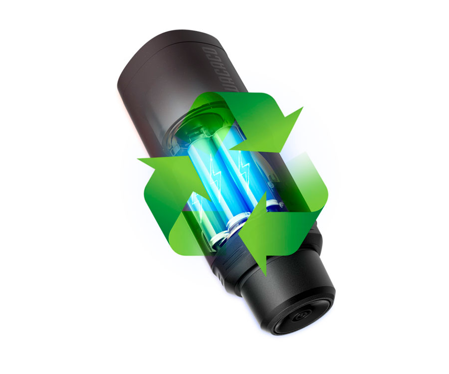 Живлення від 3 акумуляторів по 3000 мАгод. Повного заряду акумуляторного блоку вистачає для приготування 8 порцій ристретто, 5 порцій еспресо, 2 порції лунго. У разі використання заздалегідь нагрітої води, кількість порцій зростає до 200 до повного розряджання батарей. Для заповнення заряду використовуйте зарядний кабель з комплекту, який під'єднується до порту USB Type-C 5В/3А. Процес заряджання триває 2.5 год.