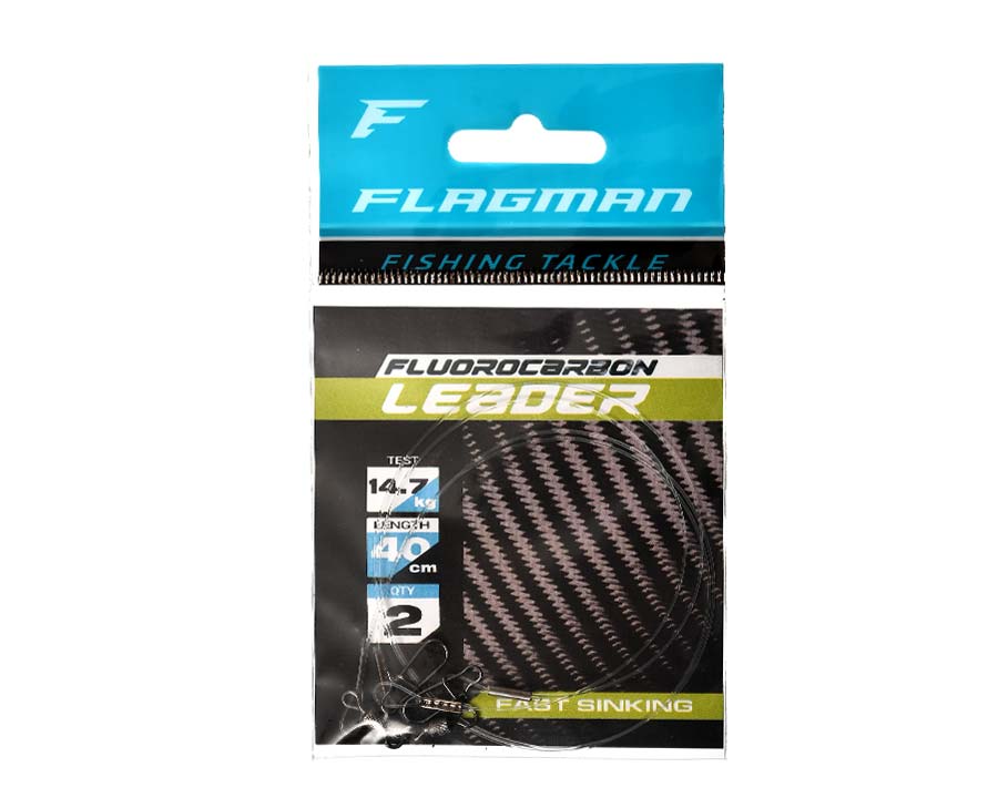 Flagman Fluorocarbon Leader – швидкотонучий повідець із флюорокарбону, який оснащено міцним вертлюгом та застібкою. Однією з визначних властивостей флюорокарбону є те, що його практично не видно у воді для риби й він не відлякує хижака. Важливу роль тут відіграє й темне антикорозійне покриття вертлюга та застібки, яке теж є непомітним у товщі води. Флюорокарбон – досить міцний матеріал. Він більш стійкий до впливу ультрафіолету та перепадів температури, ніж нейлон, а також краще протистоїть гострим зубам щуки. Флюорокарбон практично не має «ефекту пам'яті», він не скручується й не втрачає форми після клювання, як металевий повідець. На вибір компанія Flagman пропонує повідці Fluorocarbon Leader різної довжини та з різним розривним навантаженням.