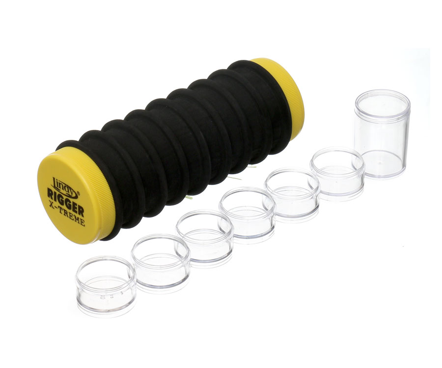 Lindy Rigger X — Treme — ідеальний помічник для підтримки порядку в снастях. Поводочниця є пластиковим тубусом з тим, що закручується з боків кришками, зовні покрита щільним піноматеріалом з 12 канавками для кріплення готового оснащення. Внаслідок чого Lindy Rigger X — Treme дуже легка і не потоне при випадковому падінні у воду. Усередині водонепроникного тубуса знаходиться набір круглих коробок з прозорого пластика, які призначені для зберігання намист, гачків, грузил або інших риболовних аксесуарів.