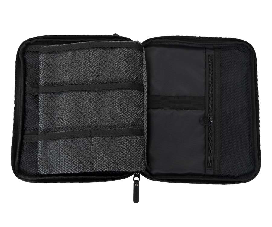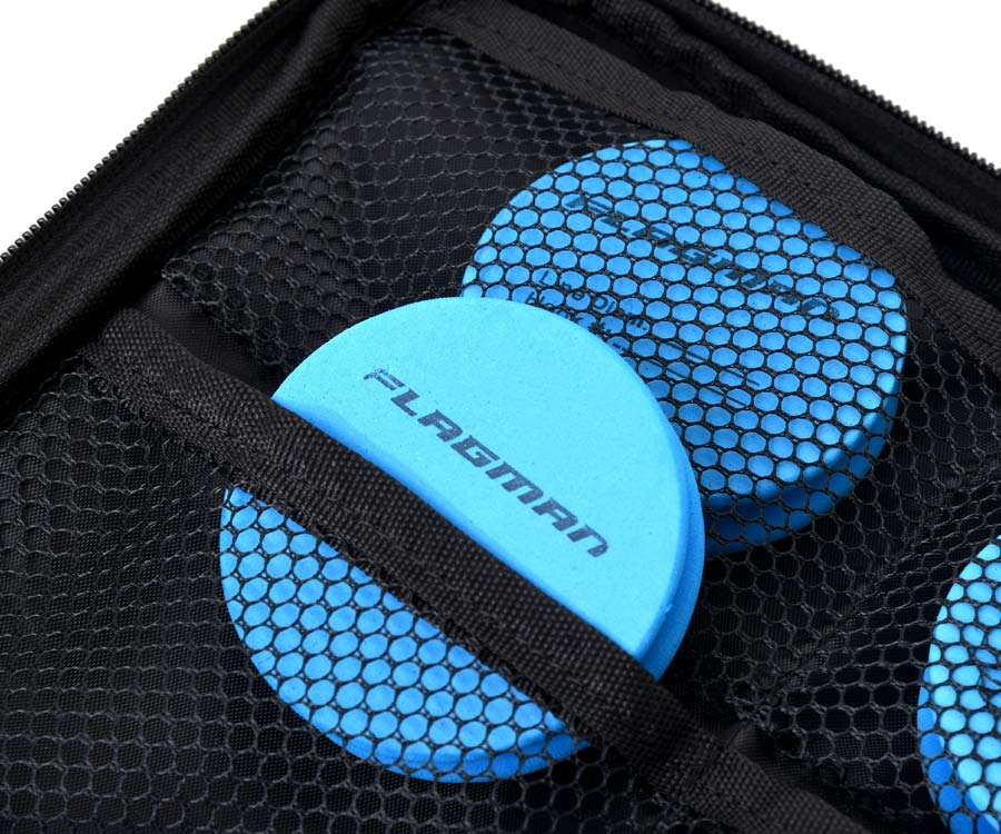 Повідочниця-органайзер Flagman Pro Competition Soft Rig Case & 6 EVA Spools – компактна сумка для риболовних аксесуарів і повідців. У лівому відділенні в невеликих сітчастих кишеньках розміщено 6 шпуль – діаметром 65 мм, виготовлених з EVA – для зберігання готових повідців. У середньому відділенні-вкладці з двох боків є аналогічні сітчасті кишеньки, у яких можна розмістити такі-ж шпулі для повідців або невеличкі коробочки, пакетики тощо з витратними матеріалами та аксесуарами. Праве відділення Flagman Pro Competition Soft Rig Case & 6 EVA Spools має дві сітчасті кишеньки з резинками та велику кишеню на блискавці. Завдяки вставкам зі щільного синтетичного матеріалу кейс Flagman Pro Competition Soft Rig Case & 6 EVA Spools чудово тримає форму та забезпечує надійний захист вмісту. Він виготовлений із міцного зносостійкого водонепроникного матеріалу Oxford 600D і закривається на двосторонню блискавку. У комплекті: 6 шпуль з EVA і 10 шпильок-фіксаторів для повідців. Розміри: 27х22х3 см.