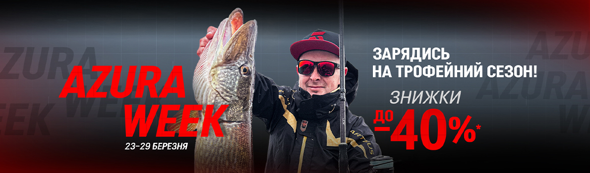 З 23 до 29 березня скористайтеся спеціальними умовами на рибальське спорядження від популярного українського бренду Azura. Це вдалий момент підготуватися до трофейного сезону – максимально ефективно та без компромісів щодо якості.