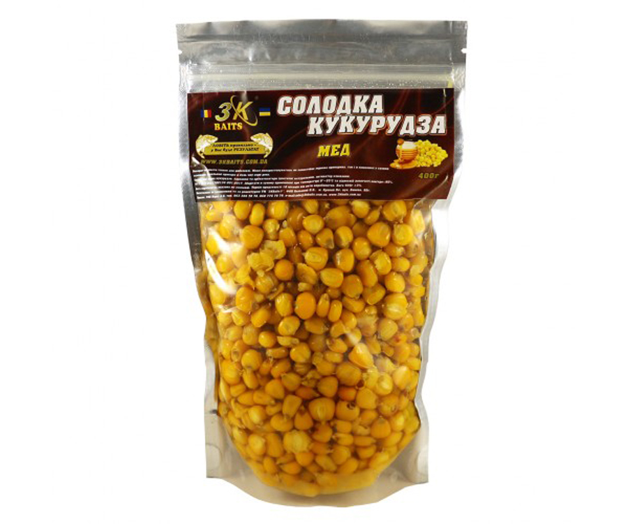 Підгодівля 3KBaits Солодка Кукурудза — універсальна підгодівля для риби. Складається з суміші різних термічно оброблених зерен. Основні компоненти: зерна кукурудзи, барвники, активатори клювання і ароматизатори. Можна використовувати самостійно або ж спільно з різними сухими сумішами, пеллетсами або бойлесами. Риба легко ідентифікує приманку, завдяки арома нутрітивним рідинам "Bambina" або "CSL Complex". За рахунок повільного насичення, риба довше залишається в підгодовувальній зоні. Приманка чудово підходить для прикорму, як в теплих водах, так і в холодних.