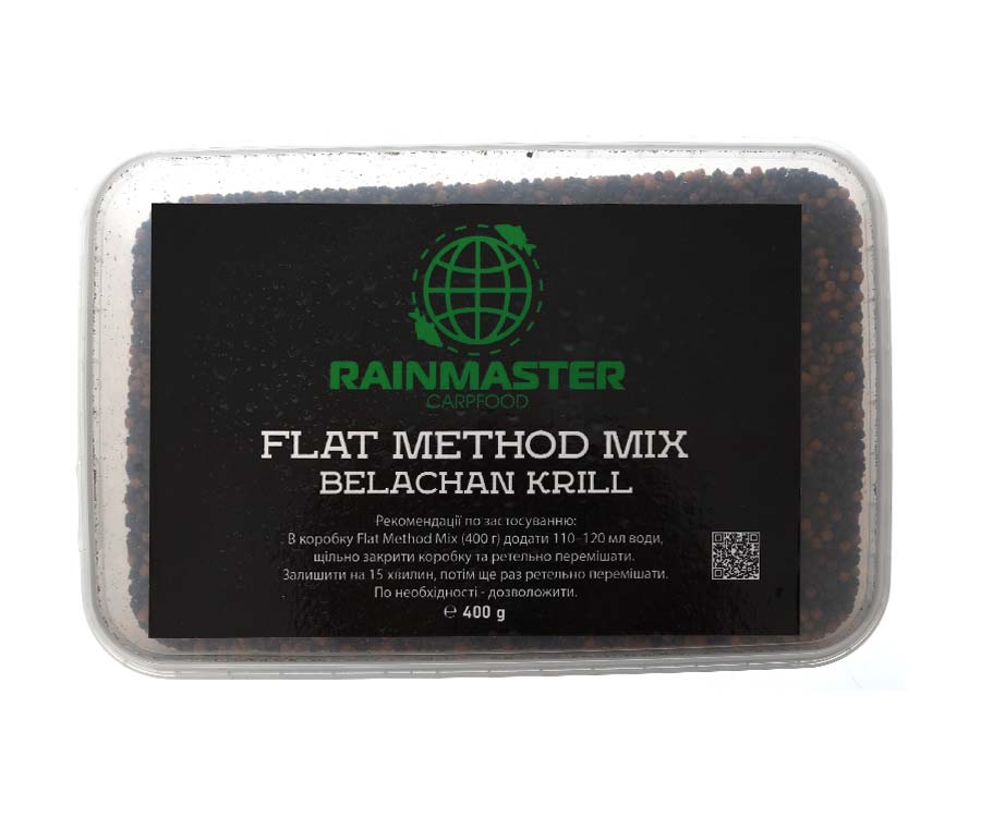 Rainmaster Flat Method Mix – спеціальні прикормочні суміші, які призначено для флет-фідерної ловлі з годівницями типу Method. Ці ефективні метод-мікси створено за унікальною рецептурою, отриманою впродовж багатьох років на великій кількості змагань із ловлі коропа за максимального пресингу на рибу. Прикормочні суміші Rainmaster Flat Method Mix виготовлено виключно з якісних натуральних інгредієнтів, які не шкодять навколишньому середовищу, мають високу харчову цінність для риби і припали їй до смаку. Зволожена суміш Flat Method Mix стає липкою та важкою. Ви можете додати пеллетс, подрібнені бойли та інші великофракційні компоненти без втрати липкості прикормки. Вона чудово формується в прес-формі, відмінно тримається в годівниці, добре тоне та залишається на дні поруч із насадкою, поширюючи у воді цінні поживні речовини та насичений аромат, що миттєво стимулює апетит риби та спонукає її до активного харчування. Упаковка: 400 г.