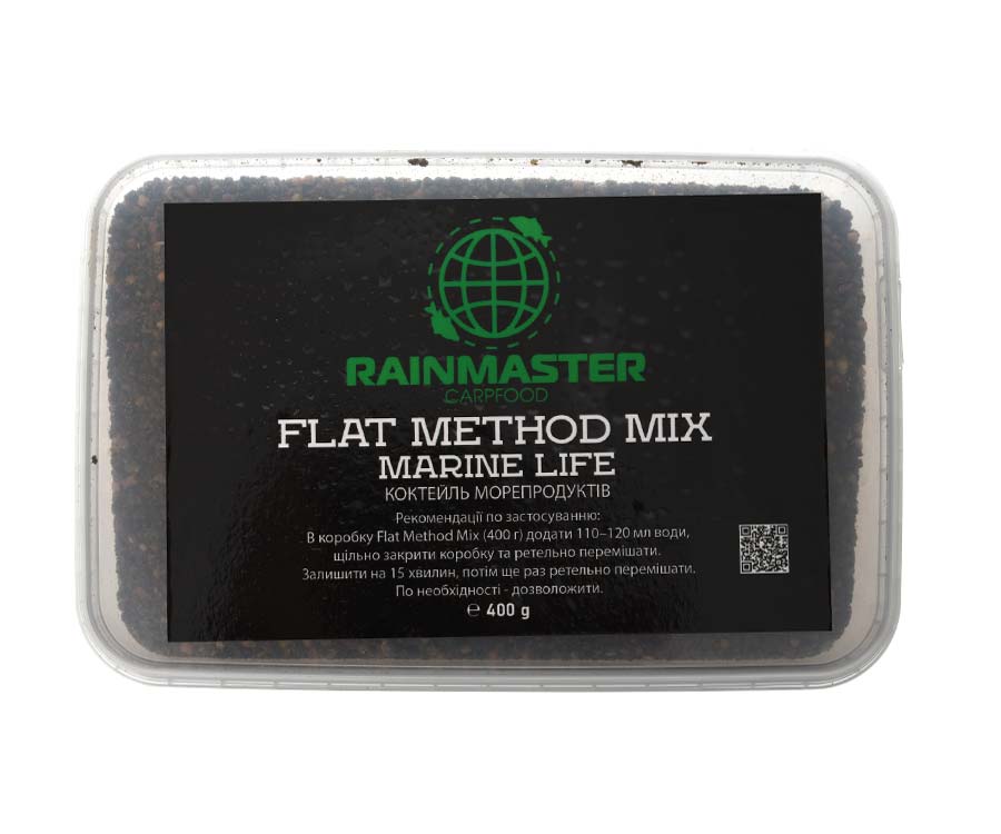 Rainmaster Flat Method Mix – спеціальні прикормочні суміші, які призначено для флет-фідерної ловлі з годівницями типу Method. Ці ефективні метод-мікси створено за унікальною рецептурою, отриманою впродовж багатьох років на великій кількості змагань із ловлі коропа за максимального пресингу на рибу. Прикормочні суміші Rainmaster Flat Method Mix виготовлено виключно з якісних натуральних інгредієнтів, які не шкодять навколишньому середовищу, мають високу харчову цінність для риби і припали їй до смаку. Зволожена суміш Flat Method Mix стає липкою та важкою. Ви можете додати пеллетс, подрібнені бойли та інші великофракційні компоненти без втрати липкості прикормки. Вона чудово формується в прес-формі, відмінно тримається в годівниці, добре тоне та залишається на дні поруч із насадкою, поширюючи у воді цінні поживні речовини та насичений аромат, що миттєво стимулює апетит риби та спонукає її до активного харчування. Упаковка: 400 г.