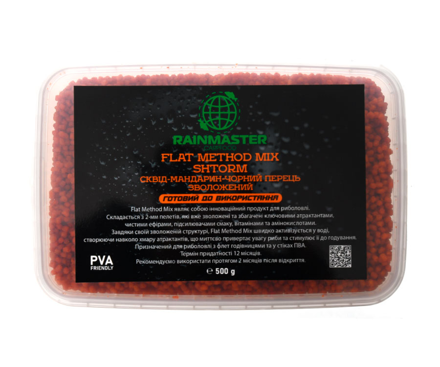 Rainmaster Flat Method Mix – спеціальні прикормочні суміші, які призначено для флет-фідерної ловлі з годівницями типу Method. Ці ефективні метод-мікси створено за унікальною рецептурою, отриманою впродовж багатьох років на великій кількості змагань із ловлі коропа за максимального пресингу на рибу. Прикормочні суміші Rainmaster Flat Method Mix виготовлено виключно з якісних натуральних інгредієнтів, які не шкодять навколишньому середовищу, мають високу харчову цінність для риби і припали їй до смаку. Зволожена суміш Flat Method Mix стає липкою та важкою. Ви можете додати пеллетс, подрібнені бойли та інші великофракційні компоненти без втрати липкості прикормки. Вона чудово формується в прес-формі, відмінно тримається в годівниці, добре тоне та залишається на дні поруч із насадкою, поширюючи у воді цінні поживні речовини та насичений аромат, що миттєво стимулює апетит риби та спонукає її до активного харчування. Упаковка: 400 г.