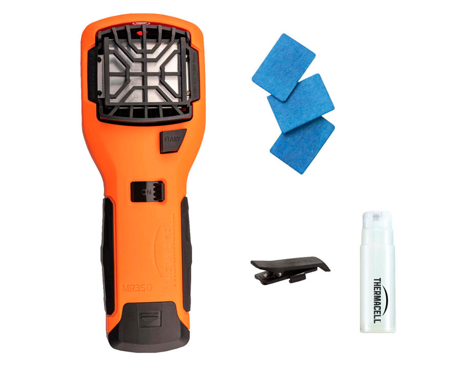 Пристрій від комарів Thermacell Portable Mosquito Repeller MR-300 – сучасний прилад, що забезпечує захист риболовів, мисливців, туристів, відпочиваючих на природі людей від комарів і інших комах на площі до 20 квадратних метрів та поширює репелент за принципом фумігації. Для роботи фумігатора необхідно встановити газовий картридж, який фіксується в руків’ї, і пластину з репелентом. Після вмикання приладу, пластина, просочена аналогом природного інсектициду Алетрин, нагрівається, поширюючи захисну речовину навколо користувача. Кожен балончик із газом працює до 12 годин, пластинка з репелентом – до 4 годин. Ви можете використовувати прилад і менший час, наприклад, 1 годину на день. Якщо періоди використання перевищують 7 днів, то балончик і пластину необхідно вийняти з приладу, і зберігати в сухому темному місці до наступного використання.