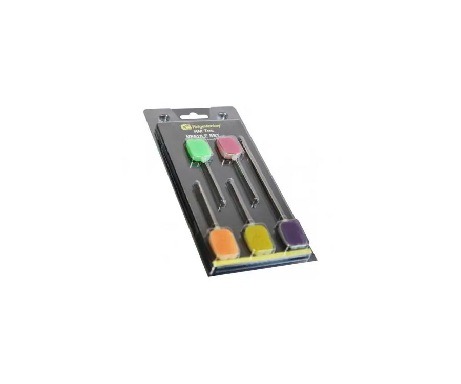 Голки Ridge Monkey RM-Tec Needle дають змогу виконувати різноманітні операції під час монтажу коропових оснасток і роботи з насадками. Кожна голка має власний колір ручки, виробленої з фірмового пластику Nite-Glo, який світиться в темряві. За кольором рукояті риболов може одразу вибрати саме ту голку, яка йому потрібна, що дозволяє економити час на риболовлі.
