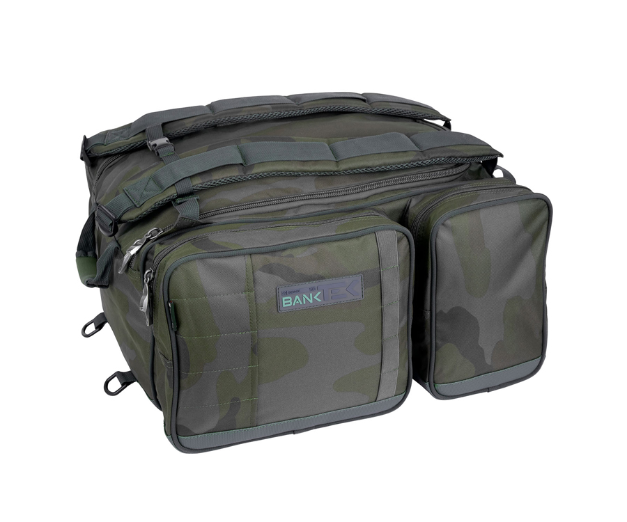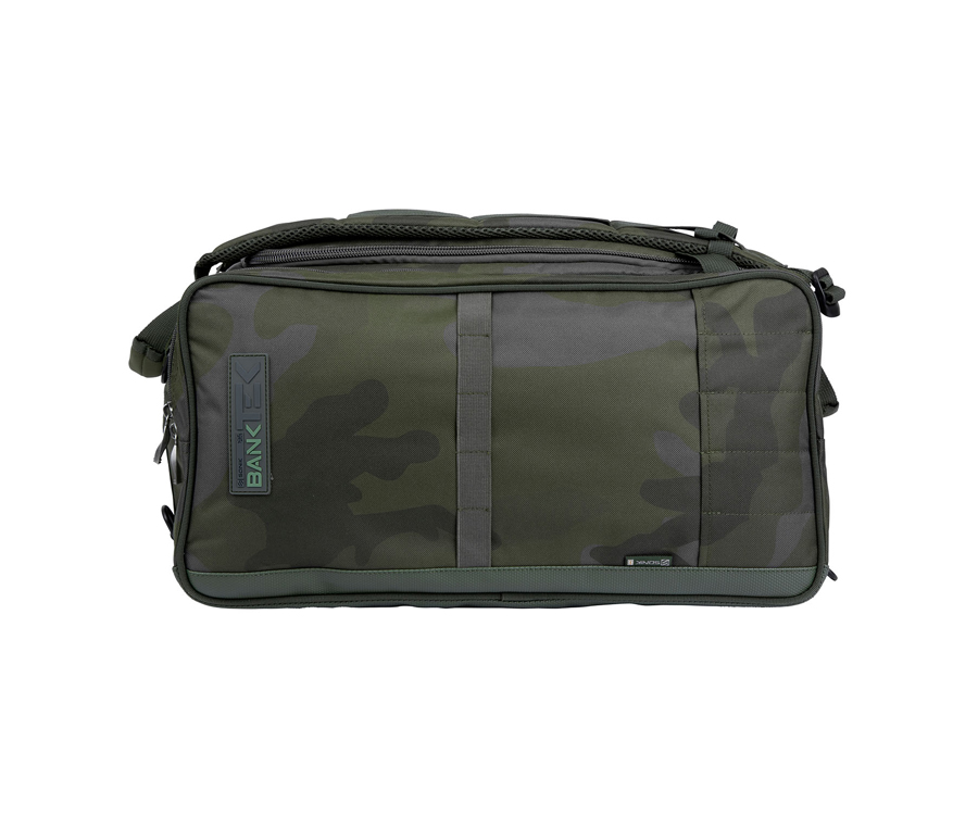 Ідеальний багатофункціональний предмет багажу: рюкзак, сумка-переноска або сумка-бархотка - все в одному. Bank-Tek Ruckbag виготовлено з міцного, але тонко стилізованого матеріалу Bank-Tek Camo. Він повністю на підкладці, з м'якою підкладкою і посиленою конструкцією, що забезпечує жорстку конструкцію для легкого доступу. Усі кишені максимально оптимізовані для скорочення порожнього простору і мають розміри, що дають змогу легко розмістити модульні сумки для аксесуарів Sonik. Швидкозахватні ручки і низькопрофільний дизайн роблять його ідеальним для зберігання під ліжком. Завдяки верхнім і нижнім точкам кріплення D-кільця можна легко закріпити додаткові аксесуари, як-от стільчик і килимок, що відстібається. З кожного боку також можна зберігати палиці для швидкого встановлення. Всі основні місця зносу посилені для максимальної міцності.