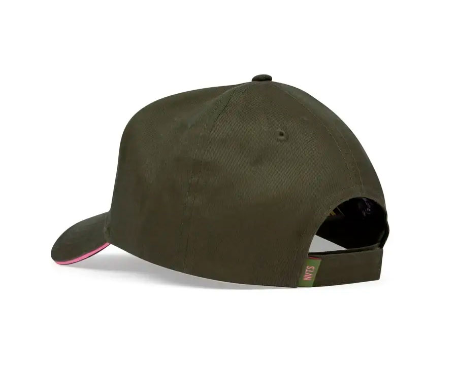 Эта классическая зеленая бейсболка, разработанная для дополнения остальной части коллекции Lily, украшена вышивкой в виде розового лотоса спереди, козырьком с розовым концом и полностью регулируется.