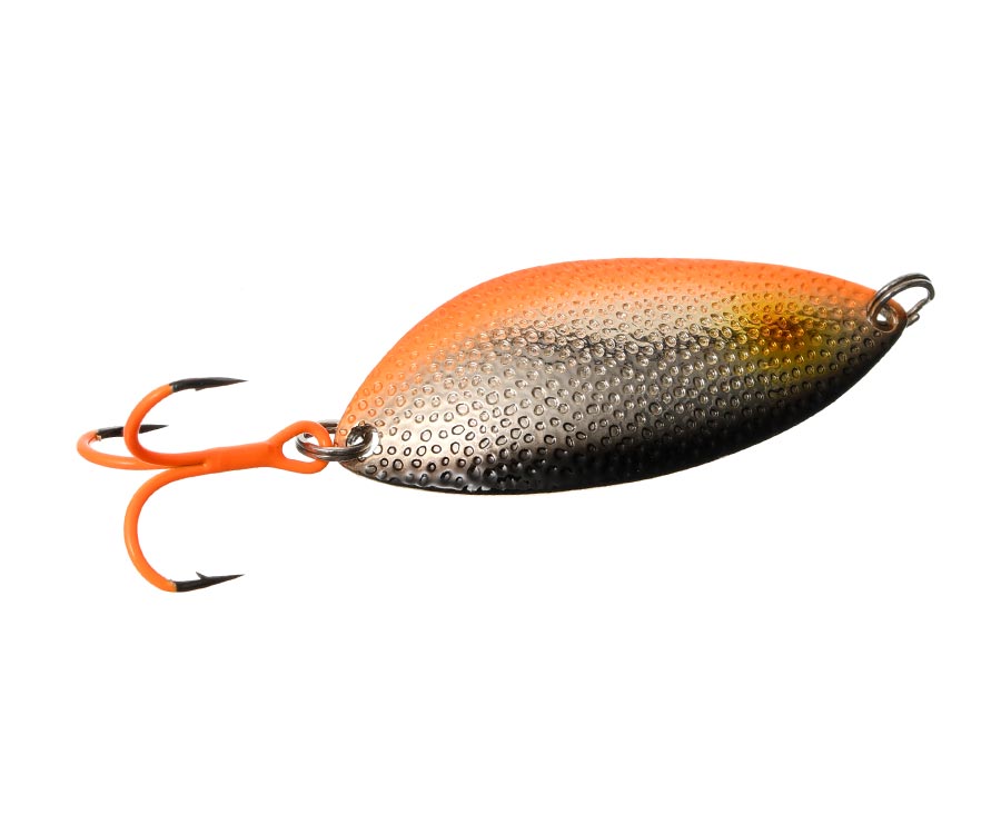 Azura Fortran – настоящая гроза хищников, выделяющаяся среди прочих классической геометрией и высокой уловистостью. Тело приманки изготовлено из латуни и имеет многослойное гальваническое покрытие. Благодаря своей форме Azura Fortran обладает активной размашистой игрой даже на небольших скоростях проводки. Это универсальная приманка, она отлично держит глубину проводки и отличается высокой стабильностью игры. Прекрасно показывает себя и на течении, и в стоячей воде. Блесна отлично сбалансирована и выделяется хорошими аэродинамическими характеристиками, позволяющими выполнять дальние и точные забросы. Специальное рифление поверхности приманки в виде частых впадин-микроточек создаёт уникальный 3D-эффект объёмного, подвижного и соблазнительно мерцающего тела небольшой рыбки, а также обеспечивает микрозавихрения и турбулентность водного потока вокруг приманки, что особенно привлекает даже малоактивного хищника. Блесна Fortran оснащена надёжными заводными кольцами и острыми тройниками, способными просечь пасть любого трофея. В зависимости от размеров блесны Azura Fortran, кроме вездесущей щуки, в вашем улове будут практически все хищники наших вод: форель, окунь, жерех, судак, сом и т.п.