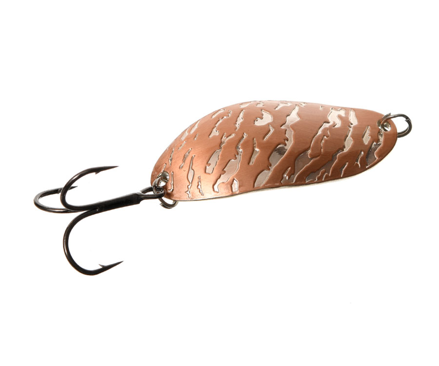 Azura Kinetik Limited Collection – серия высококлассных колеблющихся блесен классической формы, изготовленных из латуни. Благодаря своей форме блесна Azura Kinetik имеет достаточно резкую игру с высокой частотой колебаний даже на малых скоростях проводки. Она не рассчитана на ловлю на быстром течении, но на небольшом течении и в стоячей воде показывает феноменальные результаты уловистости. Эта придонная приманка отлично держит глубину проводки и часто используется для целенаправленного облова русла и прибрежной зоны равнинных рек, а также ям на водохранилищах и речных заливах, где на большой глубине обитает крупный хищник. Уникальное рифление поверхности приманки в виде микровпадин создаёт не только визуальный 3D-эффект объёмного подвижного тела небольшой рыбки, но и обеспечивает микрозавихрения и турбулентность водного потока, что на ряду с заманчивыми мерцаниями и бликами особенно привлекает хищника. Блесна Azura Kinetik Limited Collection имеет отличные аэродинамические характеристики, позволяющие выполнять дальние и точные забросы. Приманка оснащена надёжными заводными кольцами и острыми тройниками, способными просечь пасть любого трофея. В зависимости от размеров блесны Azura Kinetik в вашем улове будут и белые хищники – жерех, голавль, язь – и обычные спиннинговые трофеи, такие как форель, окунь, щука, судак и даже сом.