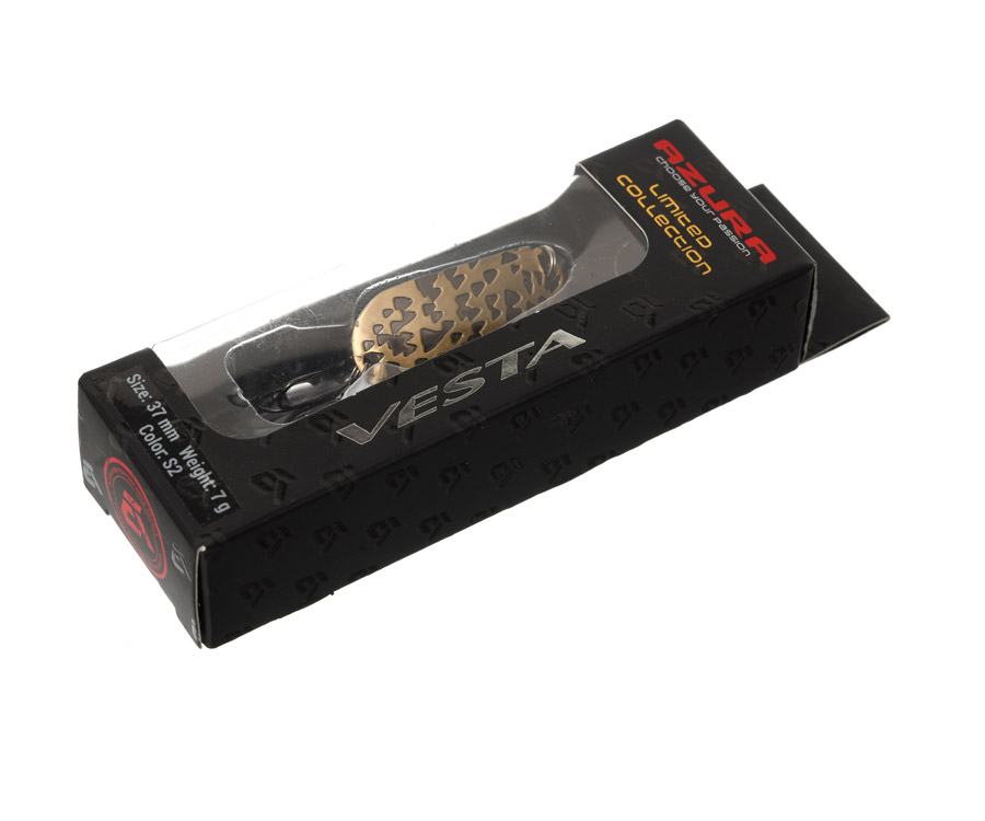 Все блесны изготовлены на высокотехнологичном оборудовании, позволяющем добиться 100% повторяемости изделий, и прошли тщательное тестирование профессиональными экспертами компании Azura. Кроме обычной серии Vesta, компания выпустила ограниченную премиальную серию Azura Vesta Limited Collection с уникальными авторскими паттернами, ещё более привлекательными для рыбы. Крючки некоторых моделей имеют специальное порошковое покрытие, которое светится в ультрафилетовом излучении.