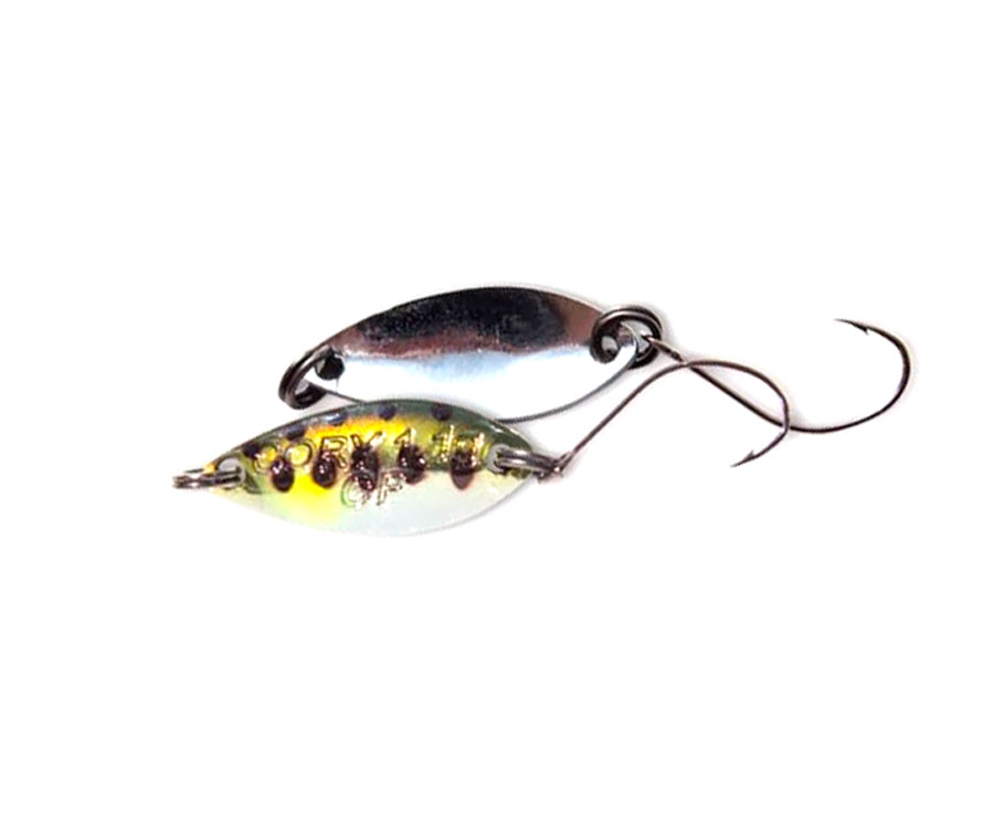 Cory — одна из самых легких блесен в нашем ассортименте. Она весит 1.1 грамма, оснащена острым одинарным крючком с микробородкой. Спроектирована так, что одинаково эффективно работает как при ловле прудовой форели, либо другой рыбы в стоячей воде, так и на реках. На течении рекомендуем использовать ее для облова обраток и мест с минимальной глубиной.