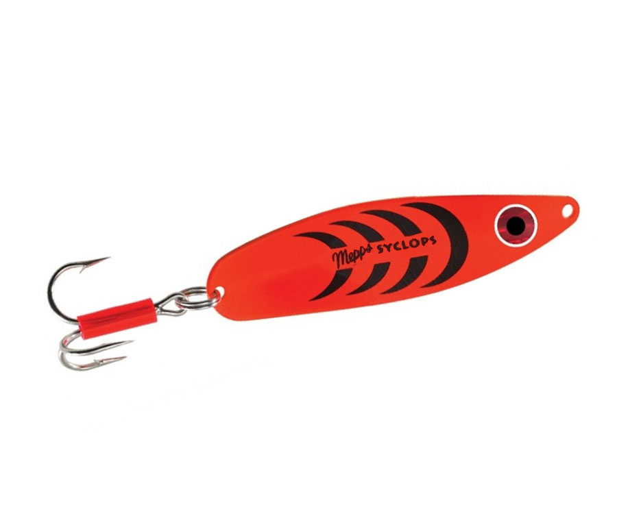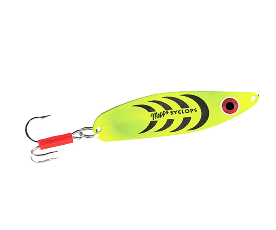 Mepps Syclops Fluo имеет двойной прогиб в горизонтальной проекции, обеспечивающий при проводке максимальное сходство с движениями живой рыбы. На разных скоростях проводки и под разным углом к течению, блесна стабильно обеспечивает привлекательную игру.
