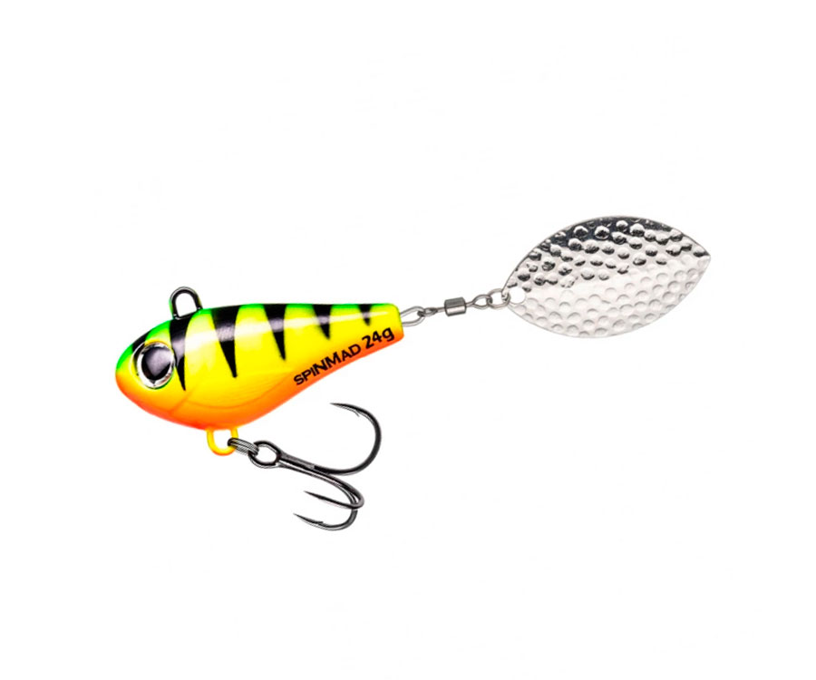 SpinMad Jigmaster – уловистый тейл-спиннер, который предназначен для облова придонных и средних слоёв водоёма. Правильно подобранная форма приманки обеспечивает не только ее высокую привлекательность для хищников, но и отличные полётные качества. Компактное тело тейл-спиннера SpinMad Jigmaster обеспечивает дальний и точный заброс даже в ветренную погоду. Объёмные формы, выразительные глазки, постоянно вращающийся во время проводки и свободного падения лепесток – все это безотказно действует на хищника и привлекают его с больших расстояний. Вибрации и блики, испускаемые лепестком, позволяют рыбе обнаружить приманку на больших глубинах и в самой мутной воде. Блесна SpinMad Jigmaster идеально подойдет для ловли окуня, щуки, судака, форели и прочих хищных и полухищных рыб джиговой или равномерной проводкой как на береговых свалах и русловых бровках, так и в других перспективных местах с неравномерным рельефом и перепадами глубин. Выпускается в разных развесовках и наиболее уловистых цветовых решениях.