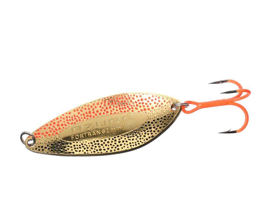 Azura Fortran Flat – серия высокоэффективных колеблющихся блесен, выделяющихся среди прочих классической геометрией и высокой уловистостью. От полюбившейся многим серии Fortran приманки Fortran Flat отличаются более широким телом и выраженным S-образным изгибом. Блесны изготовлены из латуни, имеют многослойное гальваническое покрытие. Благодаря своей форме Azura Fortran Flat обладают активной размашистой игрой даже на небольших скоростях. Приманки отлично держат глубину проводки, имея при этом высокую стабильность игры и отлично показывают себя как на течении, так и в стоячей воде. Колеблющиеся блесны Azura Fortran Flat прекрасно сбалансированы и выделяются хорошими аэродинамическими характеристиками, позволяющими выполнять дальние и точные забросы. Специальное рифление поверхности приманки в виде частых впадин-микроточек создаёт уникальный 3D-эффект объёмного, подвижного и соблазнительно мерцающего тела небольшой рыбки, а также обеспечивает микрозавихрения и турбулентность водного потока вокруг приманки, что привлекает даже самого малоактивного хищника. Каждая блесна Fortran Flat оснащена надёжными заводными кольцами и острейшими тройниками, способными просечь пасть любого трофея. В зависимости от размеров блесны, кроме вездесущей щуки, в вашем улове будут практически все хищники наших вод: форель, крупный окунь, жерех, судак, сом и т.п. Все блесны изготовлены на высокотехнологичном оборудовании, позволяющем добиться 100% повторяемости изделий, и прошли тщательное тестирование профессиональными экспертами компании Azura.