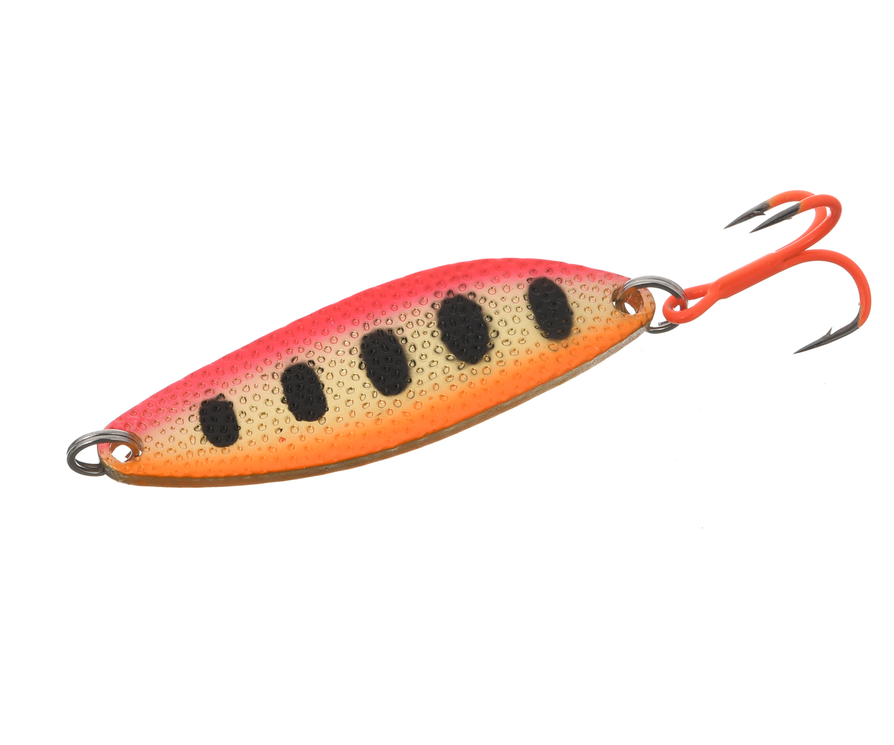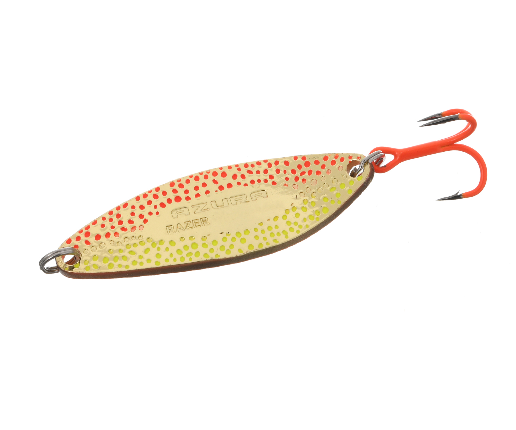 Блесны Azura Razer – серия высококлассных колеблющихся блесен удлинённой зауженной формы, изготовленных из латуни. Благодаря своей форме и уникальному профилю блесна Azura Razer обладает достаточно активной компактной игрой, при которой в основном работает её задняя часть, создавая мощные низкочастотные колебания, привлекательные для любого хищника. Блесна создавалась для ловли на быстрых реках, поэтому прекрасно держит течение, не всплывает на поверхность и отличается высокой стабильностью игры. В то же время заливы рек, озера, протоки и водохранилища без течения также являются вотчиной этой приманки, собирающей и здесь богатую дань! Приманка отлично сбалансирована, отлично держит глубину проводки и обладает невероятными аэродинамическими характеристиками, позволяющими выполнять дальние и сверхдальние забросы, т.е. не только работать по площадям, но и доставать до самой осторожной рыбы. Специфическая рельефная внешняя поверхность блесны не только делает привлекательным её внешний вид, но и создаёт во время проводки мерцающие блики и микрозавихрения воды, вызывающие у хищных рыб оживлённый интерес и провоцирующие их на мгновенную атаку. Блесна очень универсальна и показывает феноменальные результаты уловистости как на медленных и средних, так и на высоких скоростях проводки. В списке её трофеев щука, окунь, жерех, голавль, судак, лосось и прочие хищники. Колебалки Azura Razer – прекрасный пример объединения проверенной временем японской классики и современных технологий. Приманки оснащены надёжными заводными кольцами и острейшими тройниками, доступны в широком спектре уловистых окрасок, в длине 54, 58, 62 мм и развесовке 14, 16, 21 г соответственно.
