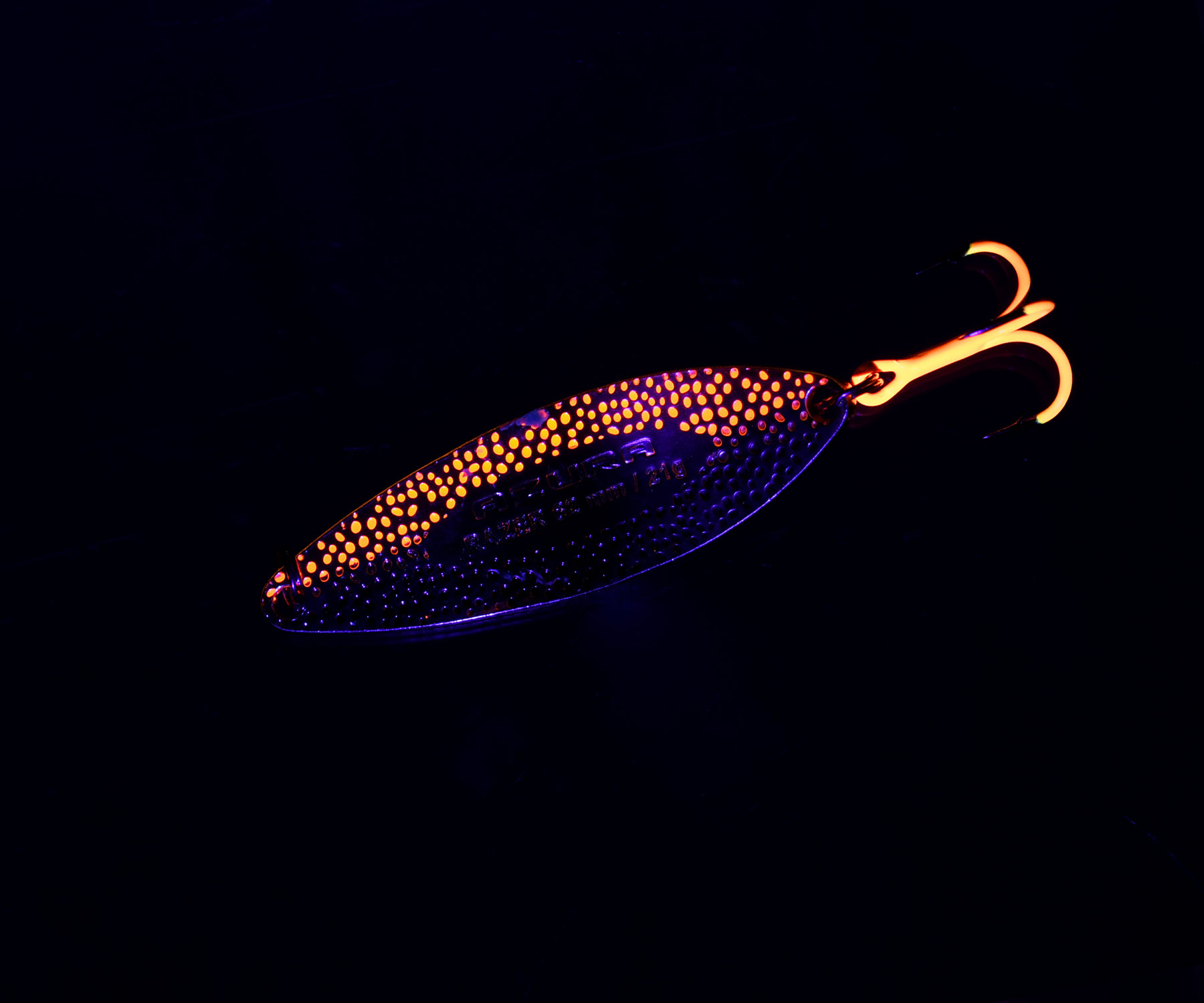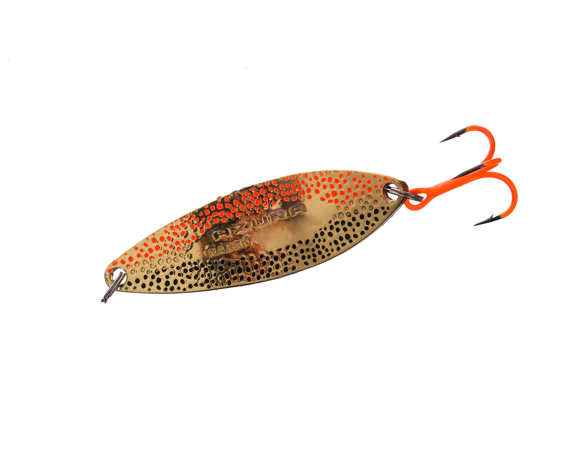 Блесны Azura Razer – серия высококлассных колеблющихся блесен удлинённой зауженной формы, изготовленных из латуни. Благодаря своей форме и уникальному профилю блесна Azura Razer обладает достаточно активной компактной игрой, при которой в основном работает её задняя часть, создавая мощные низкочастотные колебания, привлекательные для любого хищника. Блесна создавалась для ловли на быстрых реках, поэтому прекрасно держит течение, не всплывает на поверхность и отличается высокой стабильностью игры. В то же время заливы рек, озера, протоки и водохранилища без течения также являются вотчиной этой приманки, собирающей и здесь богатую дань! Приманка отлично сбалансирована, отлично держит глубину проводки и обладает невероятными аэродинамическими характеристиками, позволяющими выполнять дальние и сверхдальние забросы, т.е. не только работать по площадям, но и доставать до самой осторожной рыбы. Специфическая рельефная внешняя поверхность блесны не только делает привлекательным её внешний вид, но и создаёт во время проводки мерцающие блики и микрозавихрения воды, вызывающие у хищных рыб оживлённый интерес и провоцирующие их на мгновенную атаку. Блесна очень универсальна и показывает феноменальные результаты уловистости как на медленных и средних, так и на высоких скоростях проводки. В списке её трофеев щука, окунь, жерех, голавль, судак, лосось и прочие хищники. Колебалки Azura Razer – прекрасный пример объединения проверенной временем японской классики и современных технологий. Приманки оснащены надёжными заводными кольцами и острейшими тройниками, доступны в широком спектре уловистых окрасок, в длине 54, 58, 62 мм и развесовке 14, 16, 21 г соответственно.