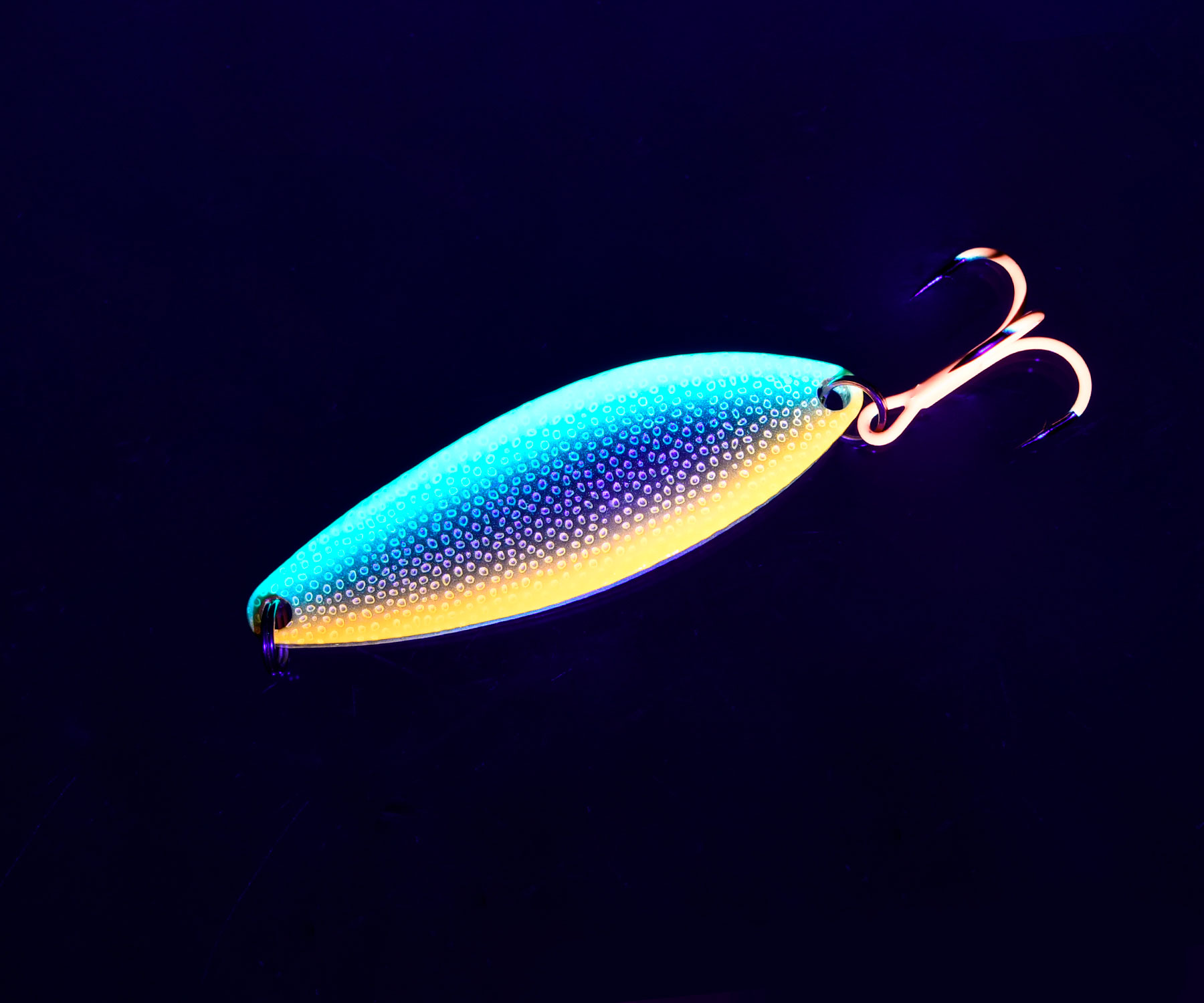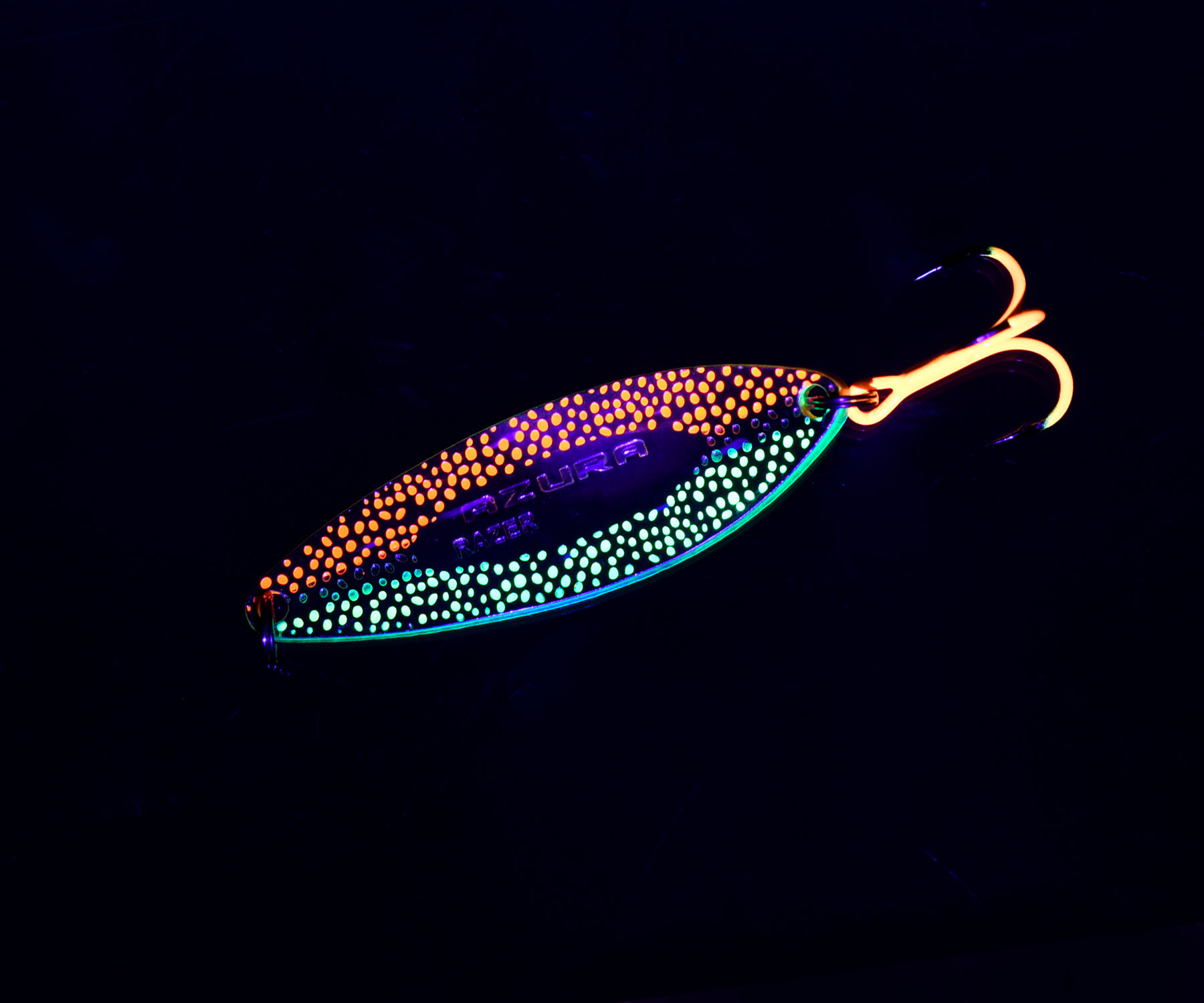 Блесны Azura Razer – серия высококлассных колеблющихся блесен удлинённой зауженной формы, изготовленных из латуни. Благодаря своей форме и уникальному профилю блесна Azura Razer обладает достаточно активной компактной игрой, при которой в основном работает её задняя часть, создавая мощные низкочастотные колебания, привлекательные для любого хищника. Блесна создавалась для ловли на быстрых реках, поэтому прекрасно держит течение, не всплывает на поверхность и отличается высокой стабильностью игры. В то же время заливы рек, озера, протоки и водохранилища без течения также являются вотчиной этой приманки, собирающей и здесь богатую дань! Приманка отлично сбалансирована, отлично держит глубину проводки и обладает невероятными аэродинамическими характеристиками, позволяющими выполнять дальние и сверхдальние забросы, т.е. не только работать по площадям, но и доставать до самой осторожной рыбы. Специфическая рельефная внешняя поверхность блесны не только делает привлекательным её внешний вид, но и создаёт во время проводки мерцающие блики и микрозавихрения воды, вызывающие у хищных рыб оживлённый интерес и провоцирующие их на мгновенную атаку. Блесна очень универсальна и показывает феноменальные результаты уловистости как на медленных и средних, так и на высоких скоростях проводки. В списке её трофеев щука, окунь, жерех, голавль, судак, лосось и прочие хищники. Колебалки Azura Razer – прекрасный пример объединения проверенной временем японской классики и современных технологий. Приманки оснащены надёжными заводными кольцами и острейшими тройниками, доступны в широком спектре уловистых окрасок, в длине 54, 58, 62 мм и развесовке 14, 16, 21 г соответственно.