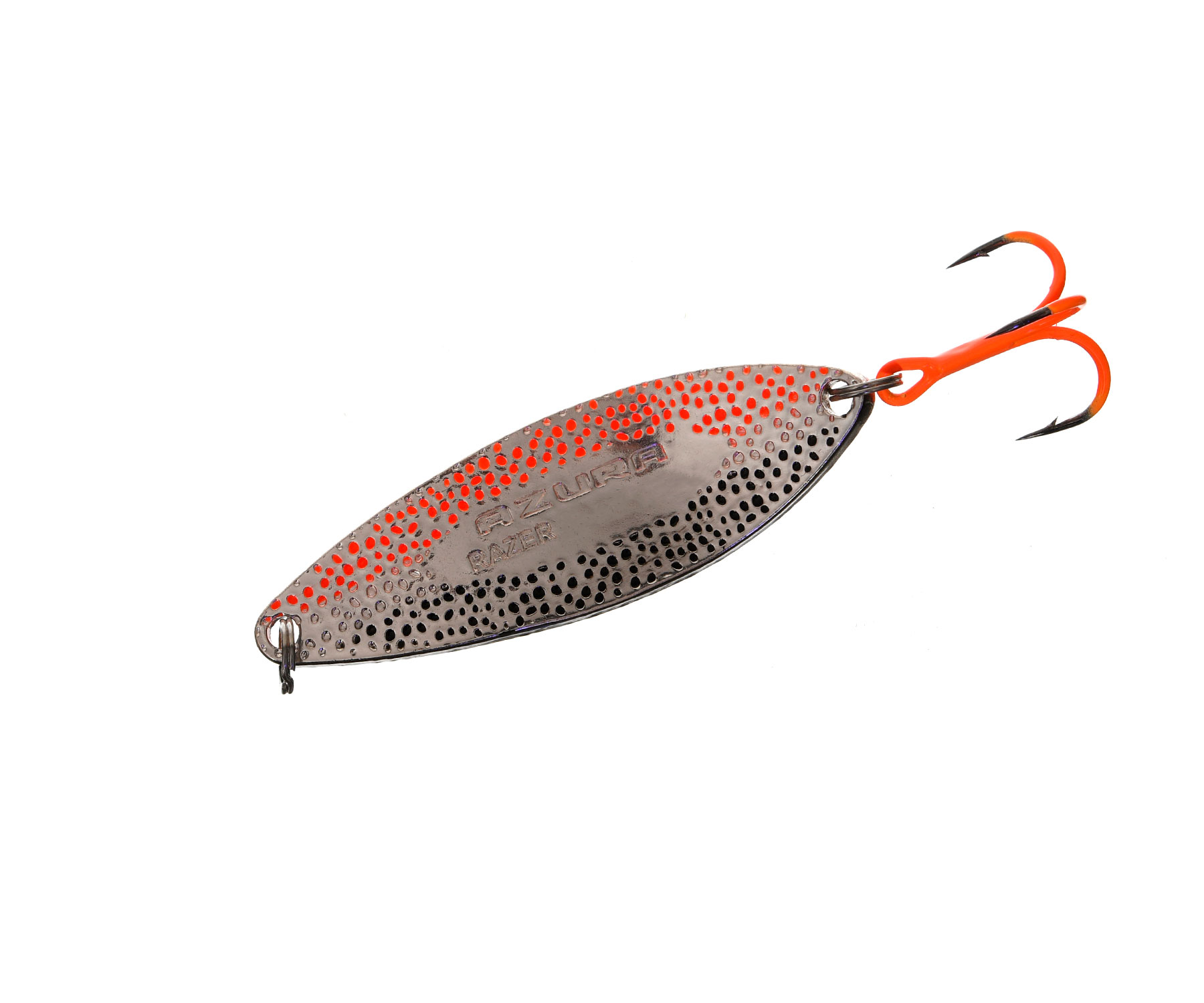 Блесны Azura Razer – серия высококлассных колеблющихся блесен удлинённой зауженной формы, изготовленных из латуни. Благодаря своей форме и уникальному профилю блесна Azura Razer обладает достаточно активной компактной игрой, при которой в основном работает её задняя часть, создавая мощные низкочастотные колебания, привлекательные для любого хищника. Блесна создавалась для ловли на быстрых реках, поэтому прекрасно держит течение, не всплывает на поверхность и отличается высокой стабильностью игры. В то же время заливы рек, озера, протоки и водохранилища без течения также являются вотчиной этой приманки, собирающей и здесь богатую дань! Приманка отлично сбалансирована, отлично держит глубину проводки и обладает невероятными аэродинамическими характеристиками, позволяющими выполнять дальние и сверхдальние забросы, т.е. не только работать по площадям, но и доставать до самой осторожной рыбы. Специфическая рельефная внешняя поверхность блесны не только делает привлекательным её внешний вид, но и создаёт во время проводки мерцающие блики и микрозавихрения воды, вызывающие у хищных рыб оживлённый интерес и провоцирующие их на мгновенную атаку. Блесна очень универсальна и показывает феноменальные результаты уловистости как на медленных и средних, так и на высоких скоростях проводки. В списке её трофеев щука, окунь, жерех, голавль, судак, лосось и прочие хищники. Колебалки Azura Razer – прекрасный пример объединения проверенной временем японской классики и современных технологий. Приманки оснащены надёжными заводными кольцами и острейшими тройниками, доступны в широком спектре уловистых окрасок, в длине 54, 58, 62 мм и развесовке 14, 16, 21 г соответственно.