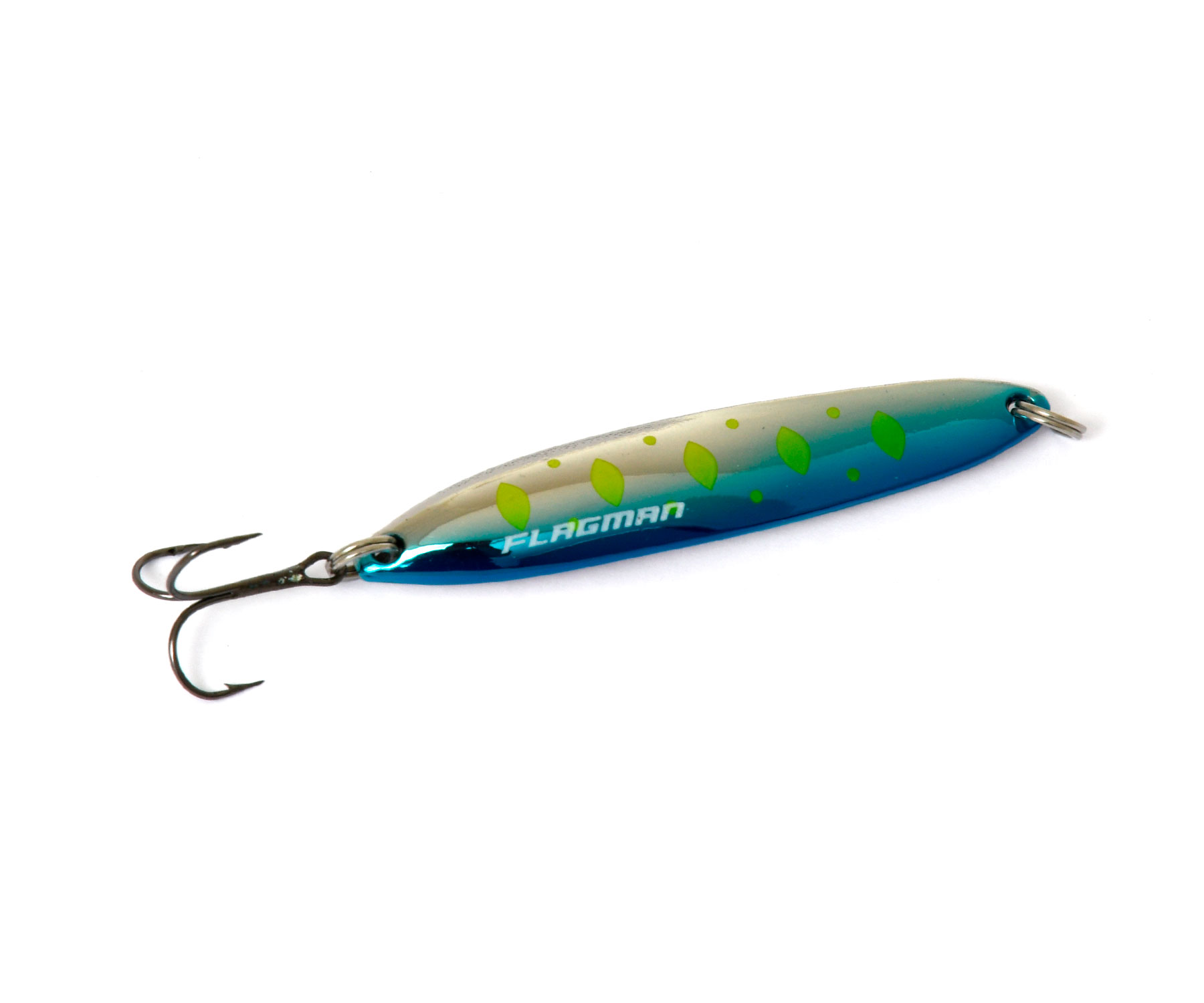 Блесна Flagman Desna BS – классическая свупердальнобойная S-образная колебалка, специально созданная для ловли лососевых и жереха на быстрых реках. Форма приманки обеспечивает устойчивую игру даже в самом сильном потоке – блесна стабильно идёт в рабочем горизонте и не выноситься течением на поверхность. Сложный профиль Flagman Desna обеспечивает множество бликов, а движения приманки идеально имитируют узкотелую резвую рыбку – потенциальную жертву хищника. Игра блесны представляет собой ритмичные волнообразные движения с боковыми покачиваниями и привлекательными вибрациями во время планирования на паузах, оставаясь стабильной на разных скоростях проводки. Все модели колеблющихся блесен Flagman Desna BS обладают невероятными полётными качествами, превышая по дальнобойности небезызвестный Kastmaster, что обеспечивает быстрый облов больших участков водоёма и гарантируют комфортную ловлю как на течении, так и в стоячей воде. Когда вам нужно достать до весеннего сома или недоступного жереха на дальнем кордоне, пощипать котлового окуня, не желающего приближаться к берегу или собрать урожай щуки с перекатов или пляжных деснянских быстрин, то Flagman Desna BS – именно та приманка, о которой вы до сих пор только мечтали! Колебалки Desna от Flagman прекрасно работают на равномерной проводке, равномерной с паузами и потяжками, стоп-энд-гоу, ступенчатой проводке, причём, на самых разных скоростях подмотки. Приманки оснащены прочными коваными заводными кольцами и острейшими тройниками VMC, а их оригинальные расцветки прошли всестороннее тестирование и доказали свою высокую эффективность на многочисленных соревнованиях. Блесны Desna BS выпускаются в развесовках 10, 15, 18, 24 и 28 г, что позволяет подобрать приманку под разные условия ловли и предпочтения хищника. В зависимости от размеров блесны в вашем улове будут практически все хищники наших вод и крайнего севера: окунь, жерех, щука, судак, сом, лосось, голец, форель и прочие.
