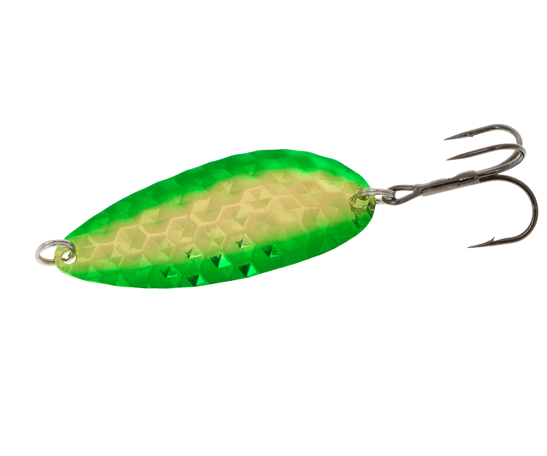 Flagman Flex Diamond 7.5 г 47 мм – классическая колеблющаяся блесна с поразительной уловистостью. Приманки подсерии «D» имеют уникальное рифление поверхности типа Diamond, создающее не только «живые» микрозавихрения водного потока, но и испускающее множество разнонаправленных бликов, особо привлекательных для любого хищника. Широкая изогнутая форма тела с задним «бугром», рифлёная поверхность и великолепная виляющая из стороны в сторону игра приманки магически действуют практически на любого хищника. Блесна Flagman Flex ловит даже там, где остальные приманки рыба полностью игнорирует, причём как на течении, так и в стоячей воде. Колебалки Flex от Flagman отлично работают на любых проводках – равномерной, равномерной с чирканьем по дну, стоп-энд-гоу (Stop&Go), ступенчатой и т.п. – причём даже при самой малой их скорости. Все модели Flagman Flex выполнены из латуни, отличаются исключительной точностью изготовления и высочайшим качеством лакокрасочного покрытия. Блесны оснащены прочными коваными заводными кольцами и острейшими тройниками VMC. Оригинальные расцветки прошли всестороннее тестирование рыболовами-спортсменами и доказали свою высокую эффективность на многочисленных соревнованиях. Flex – это идеальные приманки для ловли щуки, судака, сома, окуня, голавля, жереха, форели и прочих хищников.