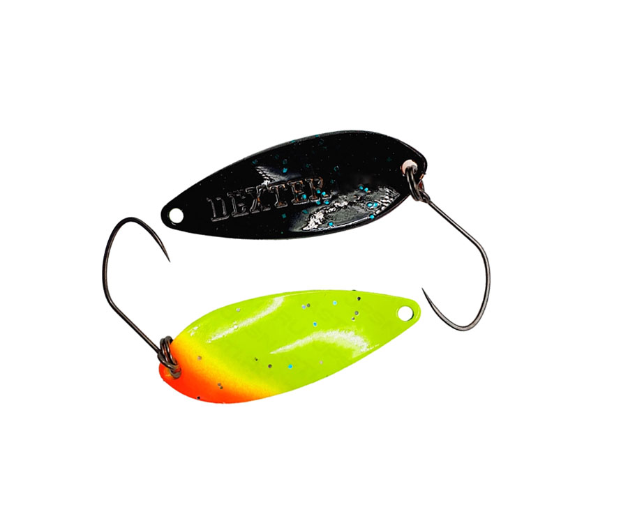 Dexter — серия колеблющихся блесен от популярной японской компании Yarie. Эти блесны используют все достоинcтва каплевидной формы и грамотную балансировку при достаточно большом весе. Сильные широкие колебания привлекают форель с максимально большого расстояния. Блесны Dexter отлично работают по самой активной рыбе. На самых медленных скоростях блесна переходя в более вертикальное положение начинает приобретать игру роллингового характера, и начинает ловить более пассивную форель. Dexter — это та самая блесна, которая будет вылавливать рыбу любой активности начиная со дна, и заканчивая средними слоями.