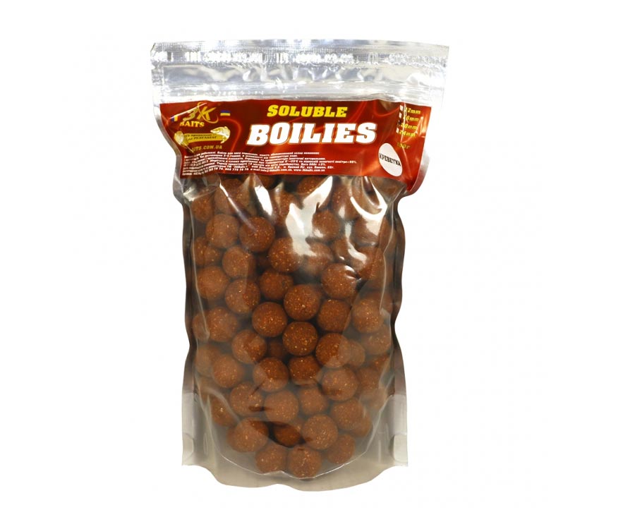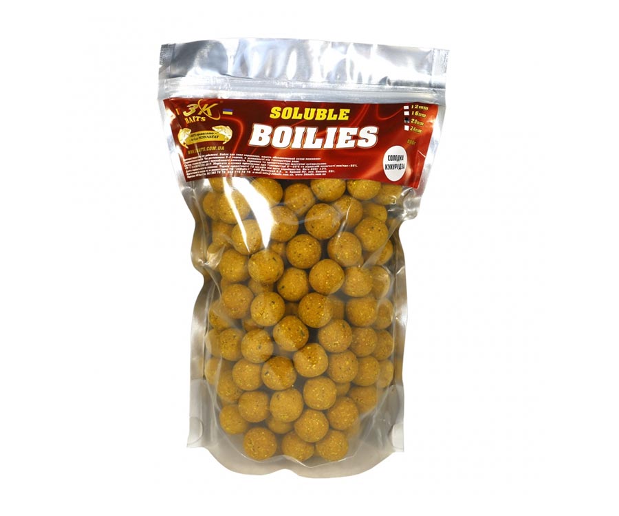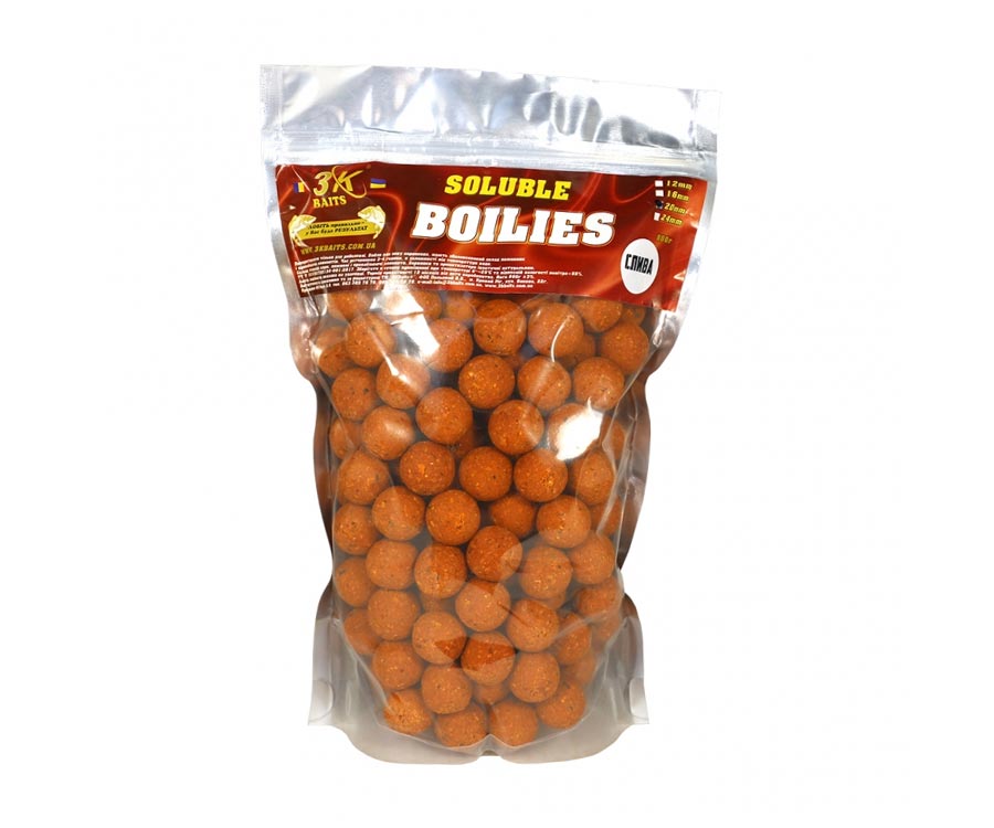 Растворимые пылящие бойлы 3KBaits – эффективные высококачественные приманки, которые специально разработаны для ловли карповых рыб. В своем составе бойлы 3KBaits имеют сбалансированный состав питательных и привлекающих рыбу элементов. Попадая в воду, приманка начинает пылить – выделять привлекающие и питательные вещества – и постепенно растворяться, образуя вокруг себя облако легкого тумана, привлекающее рыбу. Время полного растворения пылящего бойла 3KBaits, в зависимости от температуры воды, составляет около 4 часов. Бойлы ТМ 3KBaits прошли длительные испытания на водоемах Украины, и зарекомендовали себя, как очень эффективные приманки для крупной рыбы. Упаковка: zip-пакет 0,4 кг.