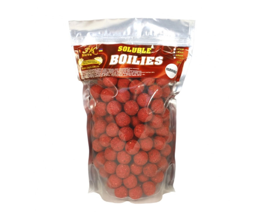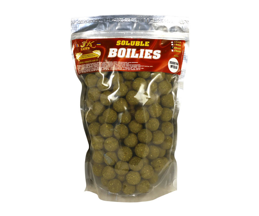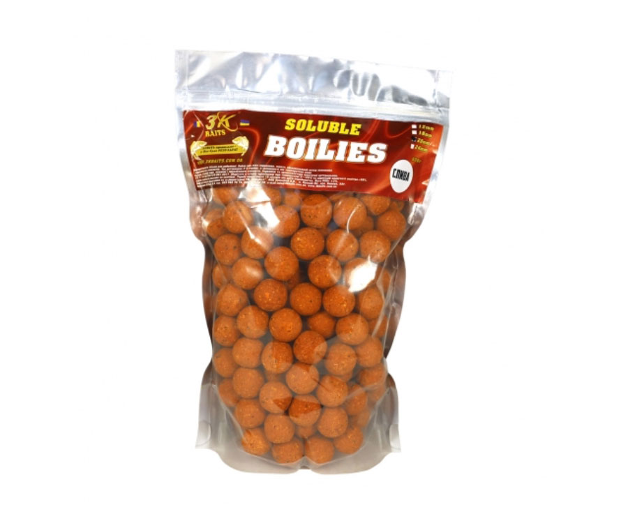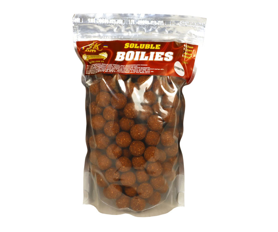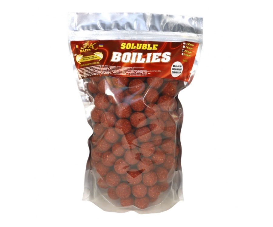 Растворимые пылящие бойлы 3KBaits – эффективные высококачественные приманки, которые специально разработаны для ловли карповых рыб. В своем составе бойлы 3KBaits имеют сбалансированный состав питательных и привлекающих рыбу элементов. Попадая в воду, приманка начинает пылить – выделять привлекающие и питательные вещества – и постепенно растворяться, образуя вокруг себя облако легкого тумана, привлекающее рыбу. Время полного растворения пылящего бойла 3KBaits, в зависимости от температуры воды, составляет около 4 часов. Бойлы ТМ 3KBaits прошли длительные испытания на водоемах Украины, и зарекомендовали себя, как очень эффективные приманки для крупной рыбы. Упаковка: zip-пакет 0,8 кг.