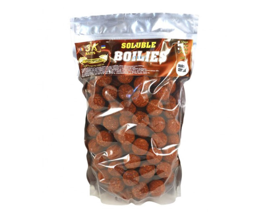 Растворимые пылящие бойлы 3KBaits – эффективные высококачественные приманки, которые специально разработаны для ловли карповых рыб. В своем составе бойлы 3KBaits имеют сбалансированный состав питательных и привлекающих рыбу элементов. Попадая в воду, приманка начинает пылить – выделять привлекающие и питательные вещества – и постепенно растворяться, образуя вокруг себя облако легкого тумана, привлекающее рыбу. Время полного растворения пылящего бойла 3KBaits, в зависимости от температуры воды, составляет около 4 часов. Бойлы ТМ 3KBaits прошли длительные испытания на водоемах Украины, и зарекомендовали себя, как очень эффективные приманки для крупной рыбы. Упаковка: zip-пакет 0,8 кг.
