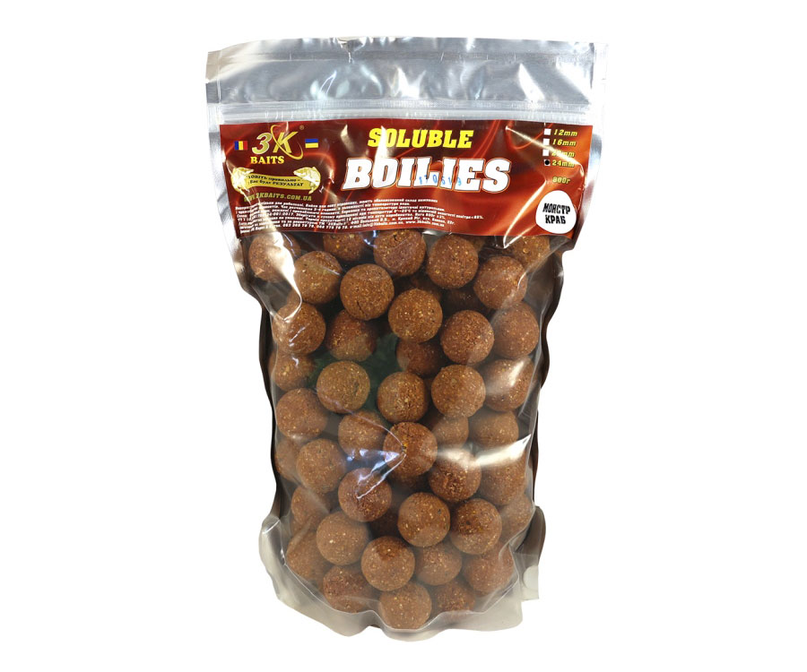 Растворимые пылящие бойлы 3KBaits – эффективные высококачественные приманки, которые специально разработаны для ловли карповых рыб. В своем составе бойлы 3KBaits имеют сбалансированный состав питательных и привлекающих рыбу элементов. Попадая в воду, приманка начинает пылить – выделять привлекающие и питательные вещества – и постепенно растворяться, образуя вокруг себя облако легкого тумана, привлекающее рыбу. Время полного растворения пылящего бойла 3KBaits, в зависимости от температуры воды, составляет около 4 часов. Бойлы ТМ 3KBaits прошли длительные испытания на водоемах Украины, и зарекомендовали себя, как очень эффективные приманки для крупной рыбы. Упаковка: zip-пакет 0,8 кг.