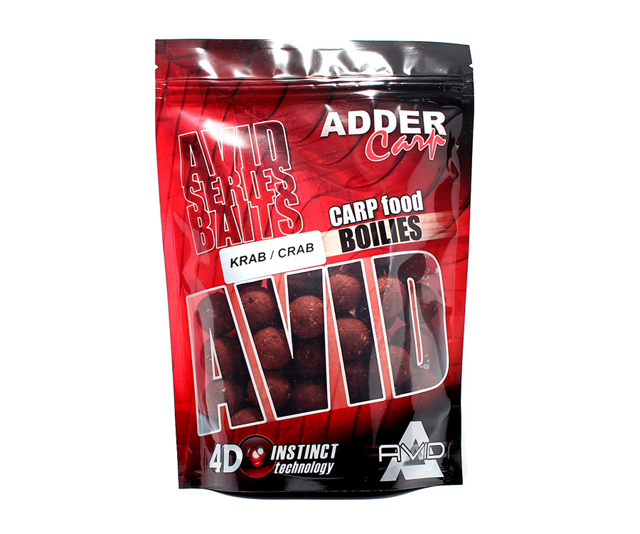 Adder Carp Boilies Avid – серия прикормочных бойлов от украинской компании-производителя Adder Carp. Приманки Boilies Avid разработаны в тесном сотрудничестве с известными европейскими карпятниками и высококвалифицированными специалистами по питанию рыб. Сочетание комплекса уникальных знаний с наилучшими на европейском рынке компонентами питания обусловило создание данной серии прикормочных бойлов. Их состав базируется на опыте и знаниях о вкусах и предпочтениях в питании карпов. Инновационная технология Instinct Technologies 4D – это авторское изобретение фирмы Adder Carp. Она предотвращает дезактивацию ответственных за стимулирование аппетита карпа низкомолекулярных компонентов в процессе изготовления бойлов, что обеспечивает устойчивое стимулирование аппетита попавших под воздействие приманки особей. Состав бойлов AC Boilies Avid обогащен ценными питательными компонентами, ароматизаторами и аттракторами. Оптимально подобранный состав Boilies Avid от Adder Carp обеспечивает высокое усваивание и быстрое пищеварение, благодаря чему достигается высокая интенсивность поклевок рыбы. Выпускаются в нескольких размерах и широком спектре ароматов.