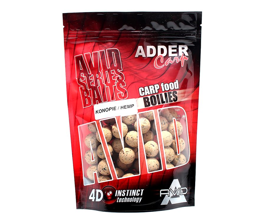 Adder Carp Boilies Avid – серия прикормочных бойлов от украинской компании-производителя Adder Carp. Приманки Boilies Avid разработаны в тесном сотрудничестве с известными европейскими карпятниками и высококвалифицированными специалистами по питанию рыб. Сочетание комплекса уникальных знаний с наилучшими на европейском рынке компонентами питания обусловило создание данной серии прикормочных бойлов. Их состав базируется на опыте и знаниях о вкусах и предпочтениях в питании карпов. Инновационная технология Instinct Technologies 4D – это авторское изобретение фирмы Adder Carp. Она предотвращает дезактивацию ответственных за стимулирование аппетита карпа низкомолекулярных компонентов в процессе изготовления бойлов, что обеспечивает устойчивое стимулирование аппетита попавших под воздействие приманки особей. Состав бойлов AC Boilies Avid обогащен ценными питательными компонентами, ароматизаторами и аттракторами. Оптимально подобранный состав Boilies Avid от Adder Carp обеспечивает высокое усваивание и быстрое пищеварение, благодаря чему достигается высокая интенсивность поклевок рыбы. Выпускаются в нескольких размерах и широком спектре ароматов.